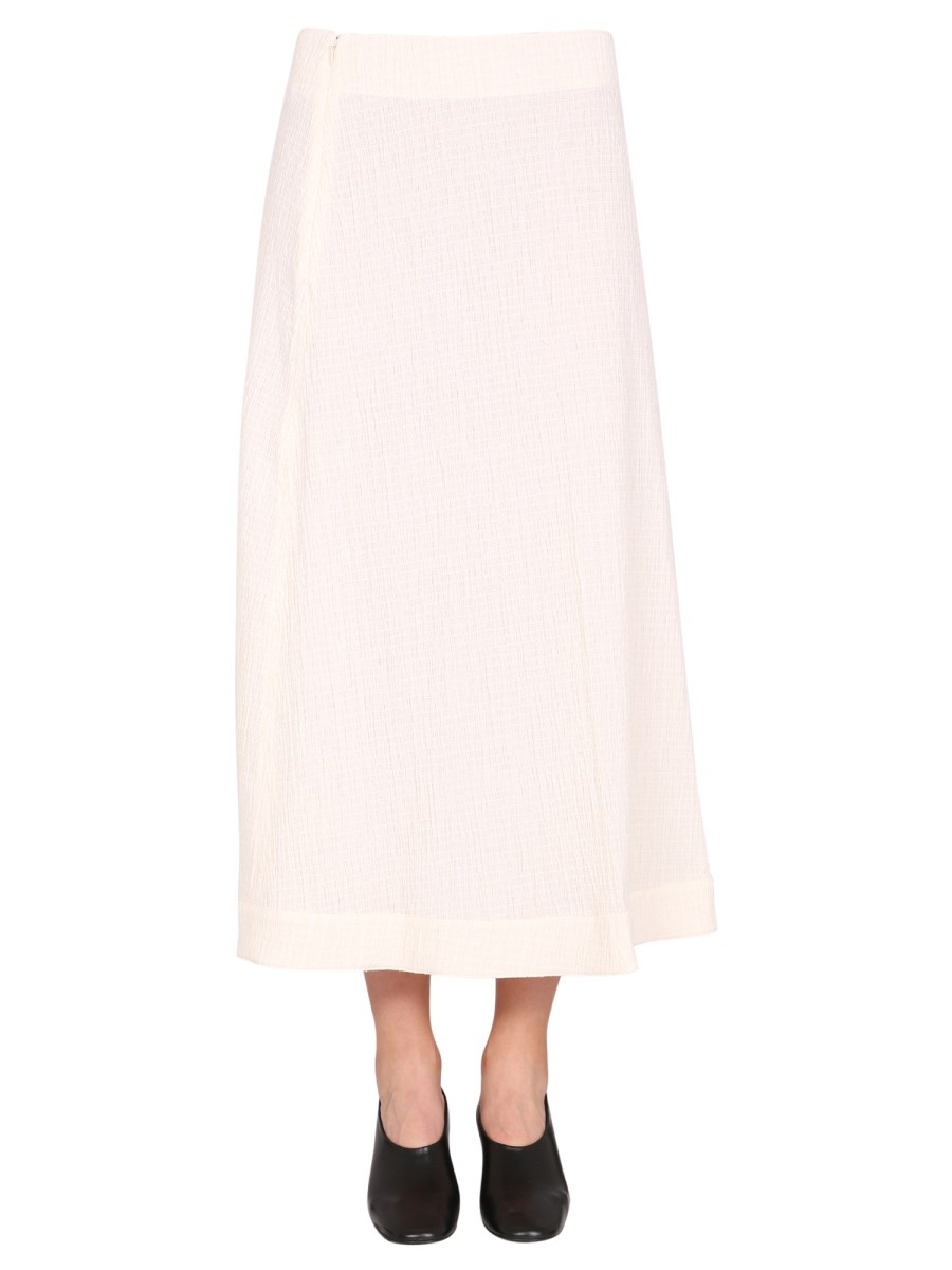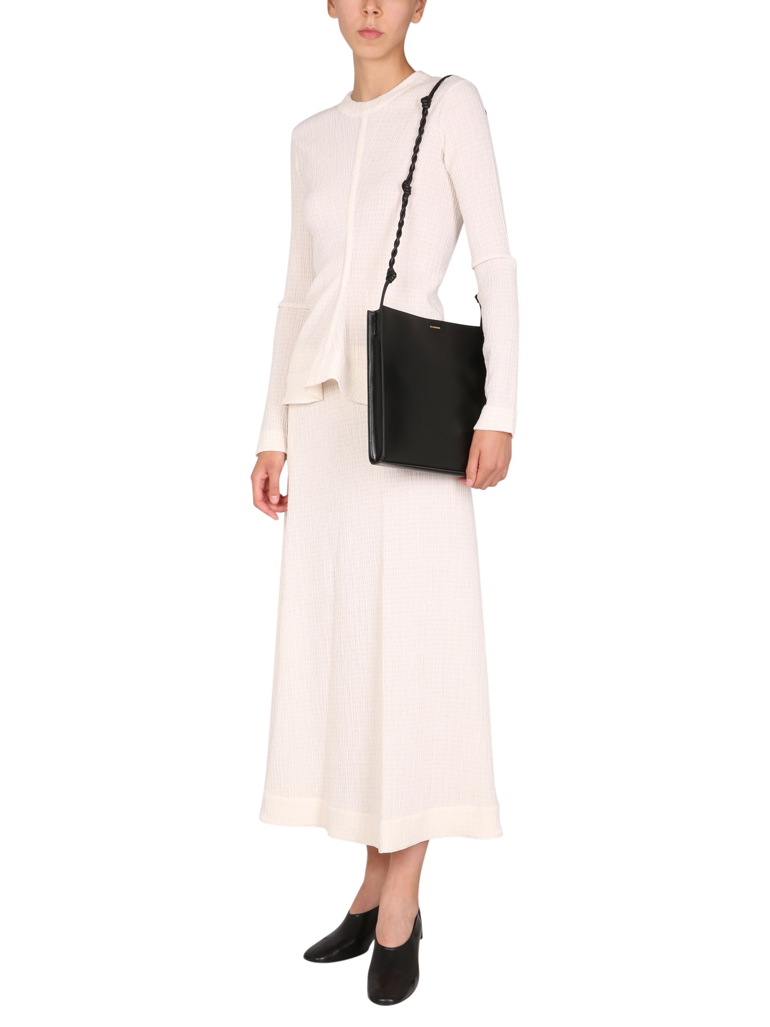- BACK ZIP CLOSURE- EMBOSSED FABRIC DETAIL- 65% POLYESTER, 34% COTTON, 1% ELASTANE- MADE IN ITALY- MODEL IS 180 CM TALL AND WEARS SIZE 38 DK