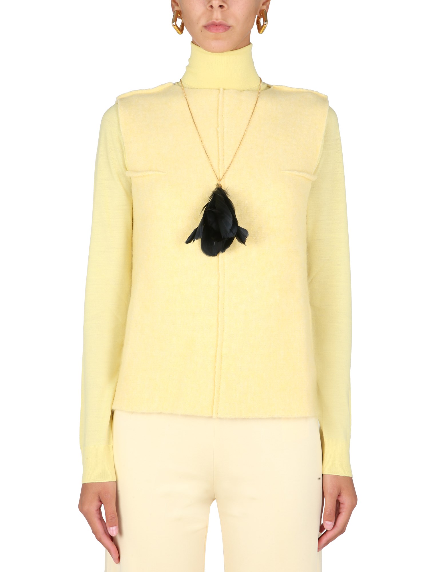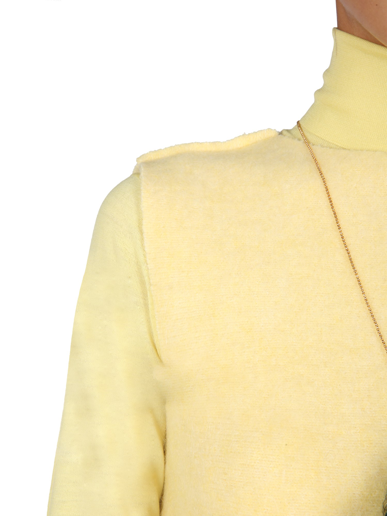 - CREW NECK- EXPOSED SEAMS- 54% WOOL, 20% MOHAIR, 16% ALPACA, 10% POLYAMIDE- MADE IN ITALY- MODEL IS 180 CM TALL AND WEARS SIZE 38 DK