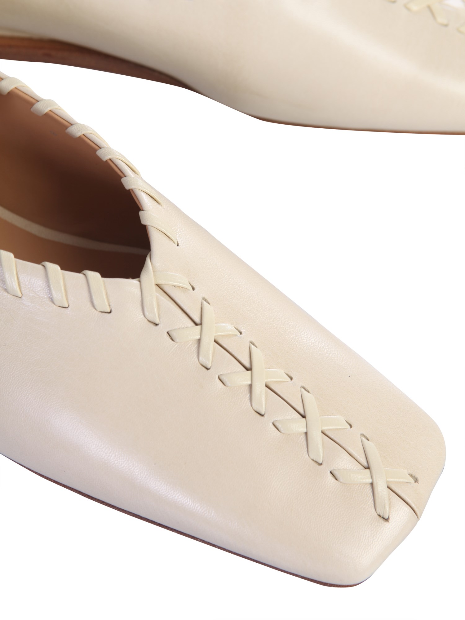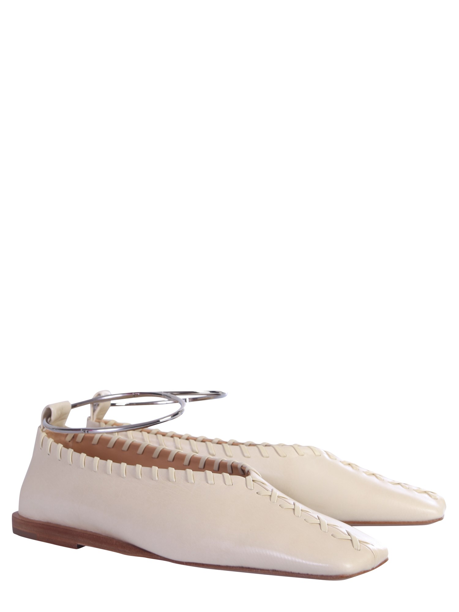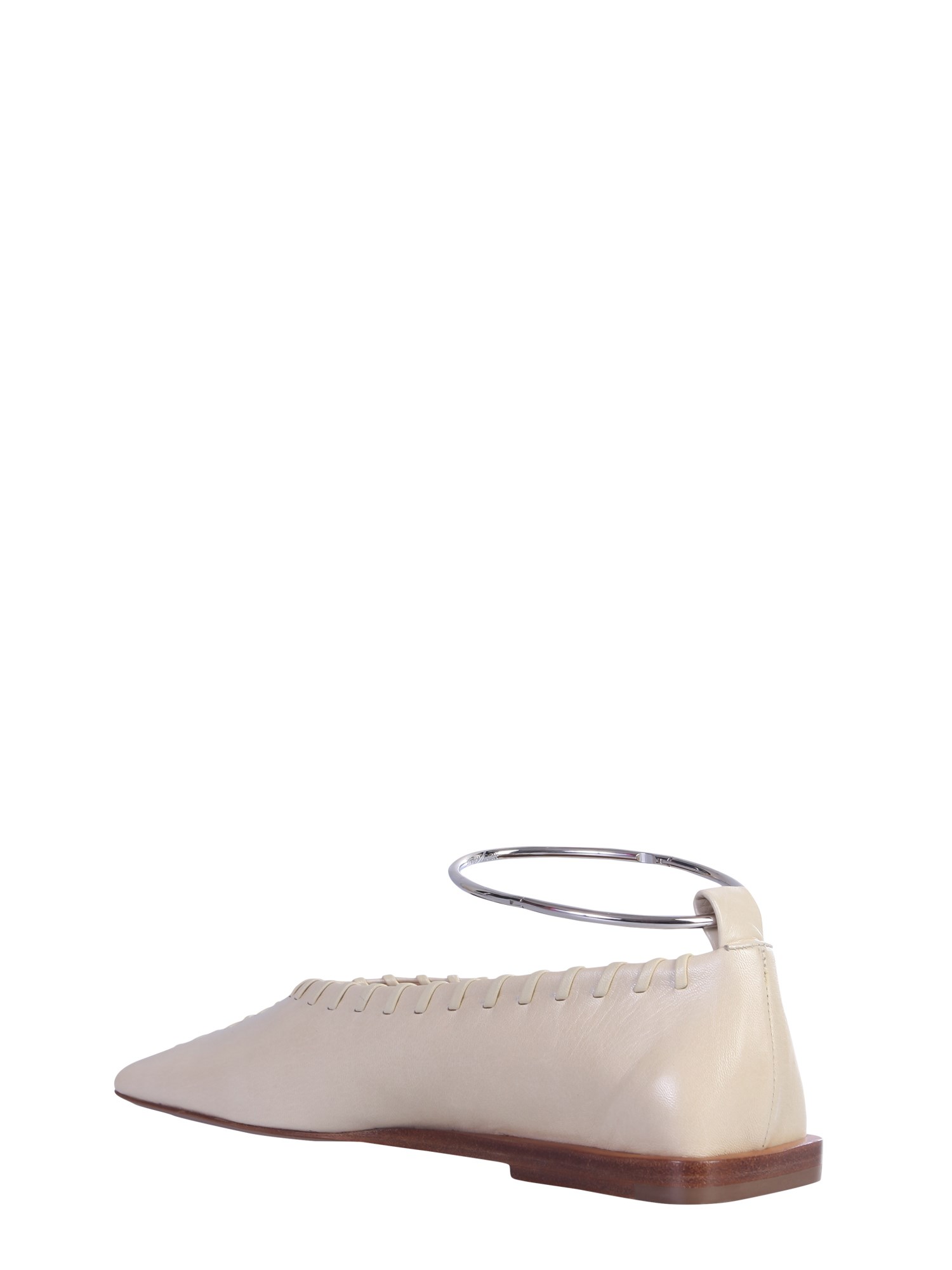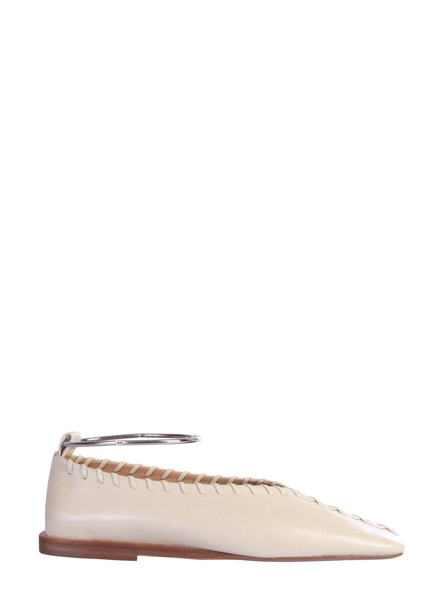 Complete an outfit in the best way you can by pairing it up with these leather ballerinas from Jil Sander. The square toe box is complemented by visible cross-stitch seams on the front panel and neck. The leather insole provides cushioning to the underfoot while the detachable metal ankle rings add a gleaming shine to this pair.