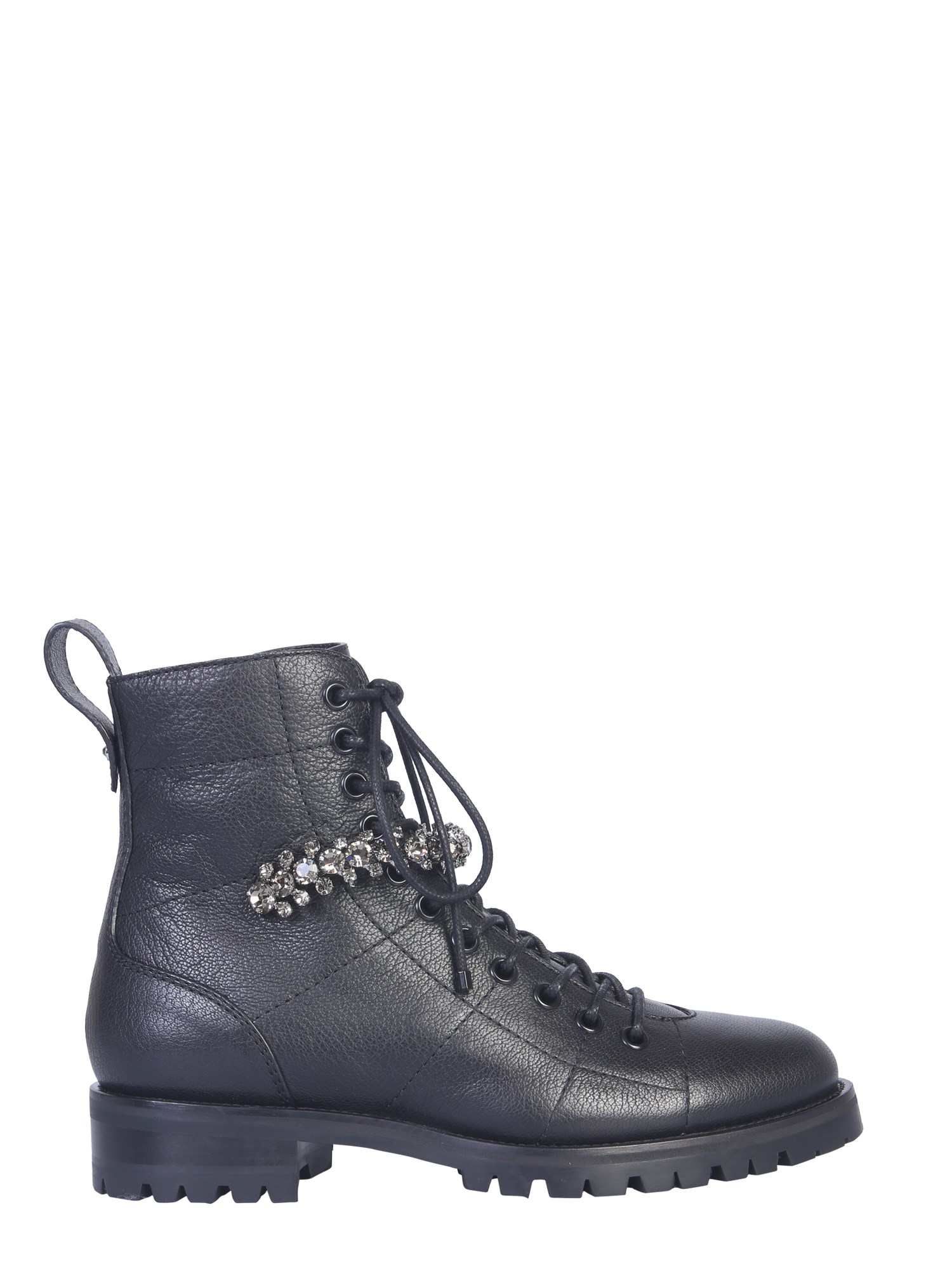 Flaunt your style sense with the boots by Jimmy Choo. Made of 100% leather, the boots are comfortable and safe to wear all-day long. Their 3cm rubber sole is designed for maximum cushioning and support to your feet. The jewel detailing on boots is added for a touch of refinement and class to them.