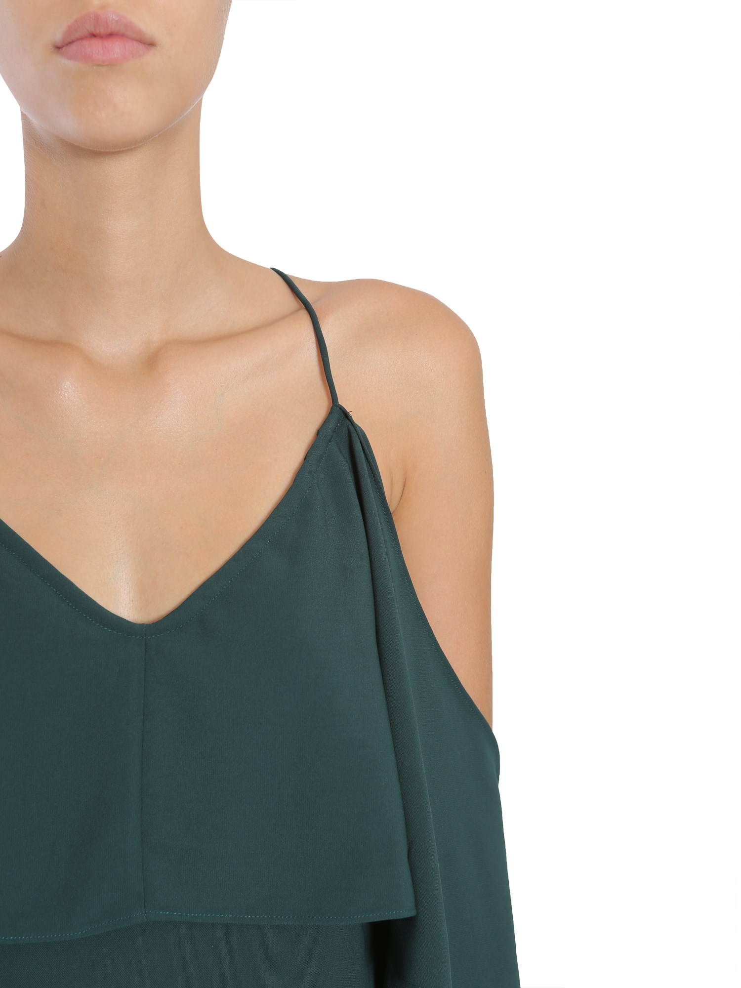 - V COLLAR- SPAGHETTI STRAPS- SELF TIE BOW CLOSURE ON BACK- RUCHED - LINED- 100% POLYESTER- MODEL IS WEARING SIZE 8