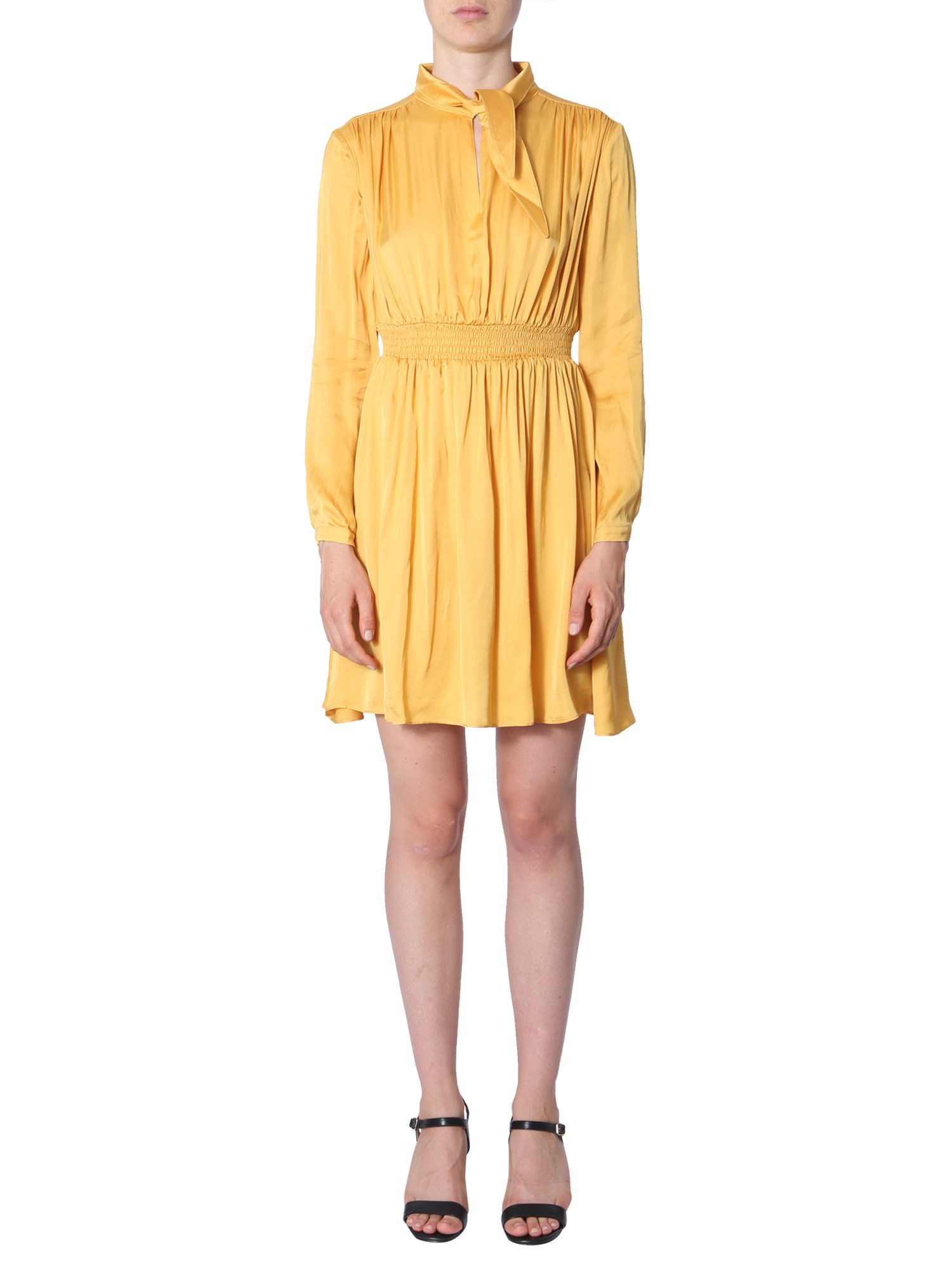 Redefine your summer closet with this "Leo" dress from Jovonna London. The dress is made from 100% viscose that lends a shiny and smooth surface. Its attractive V-neck design combines with a tie-up bow to add a modish touch to its design. The elasticated waistband will let you flaunt your curves in a stylish way.
