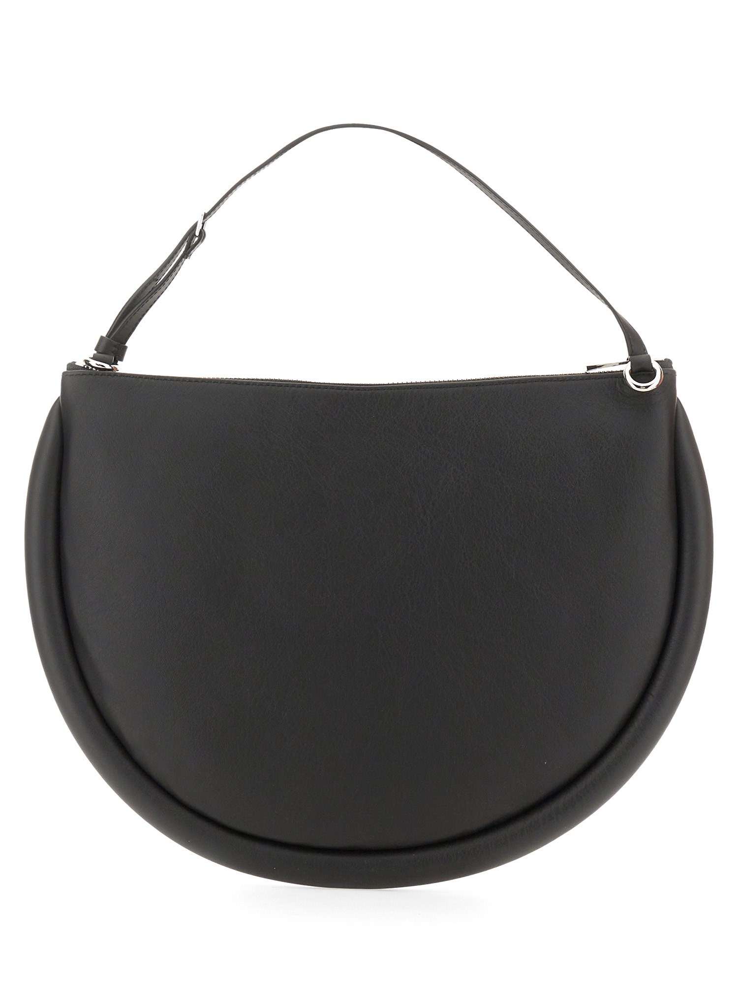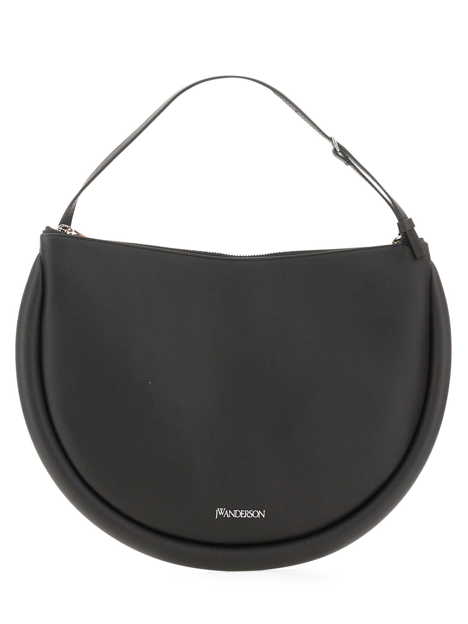 The Bumper-Moon midi shoulder bag from JW Anderson is a highly-detailed design that is the perfect mix of whimsy and functionality. It features an adjustable and removable logo shoulder strap with an adjustable top handle. The bag has a zip closure and a lined inner pocket. It is adorned with a front logo and silver finish metal accessories.