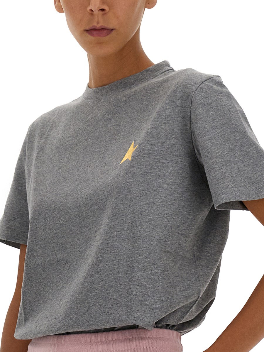 Stay on-trend with the Golden Goose jersey T-shirt. Crafted from soft fabric, this T-shirt boasts a round neckline, short sleeves, and a versatile straight hem. Pair it with your favourite jeans for a laid-back yet chic outfit.