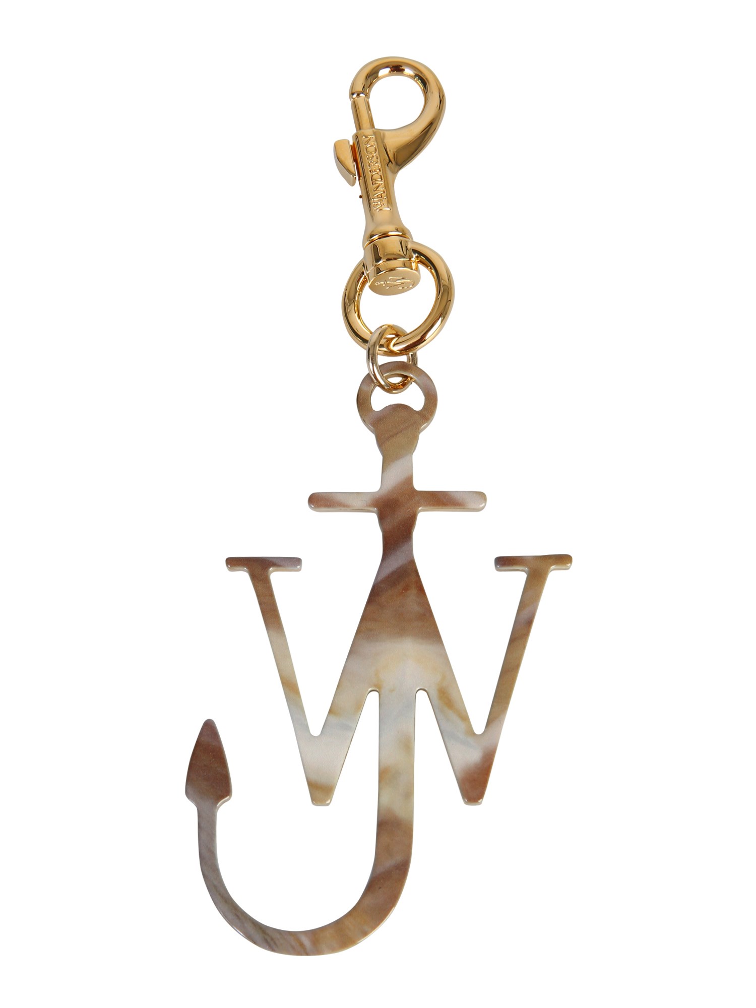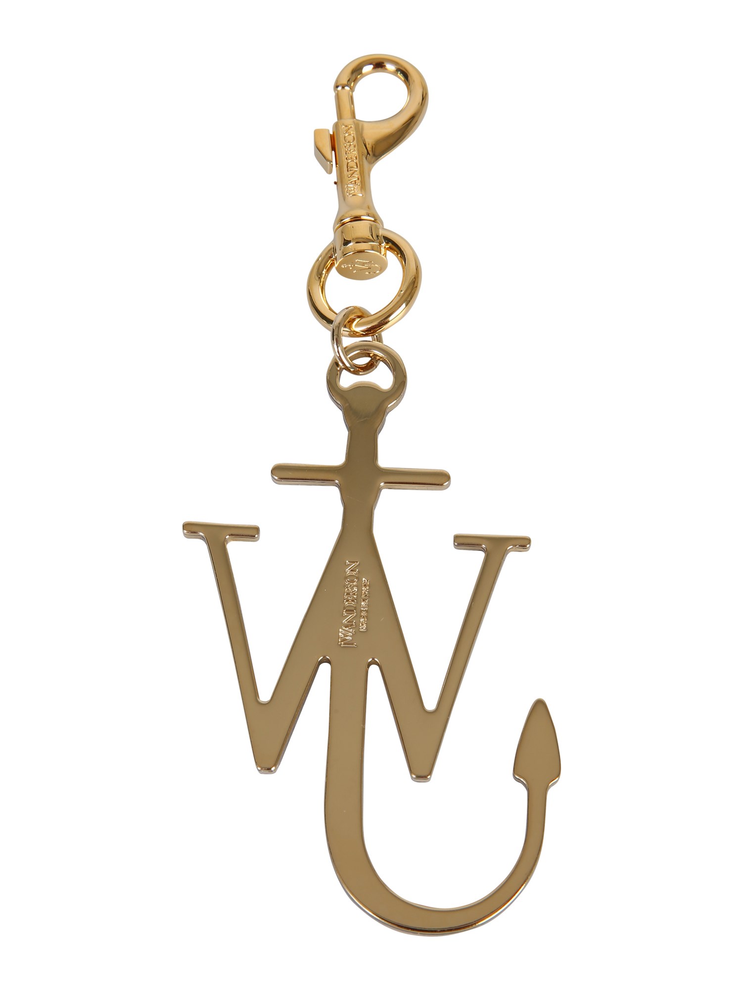Embellish your bags and similar accessories with this anchor keychain with a logo designed by JW Anderson. The logo charm is presented in a dye effect covered with a shiny coating. The whole structure stays secure on a zipper or a keyring with the help of a gold-plated clasp closure.