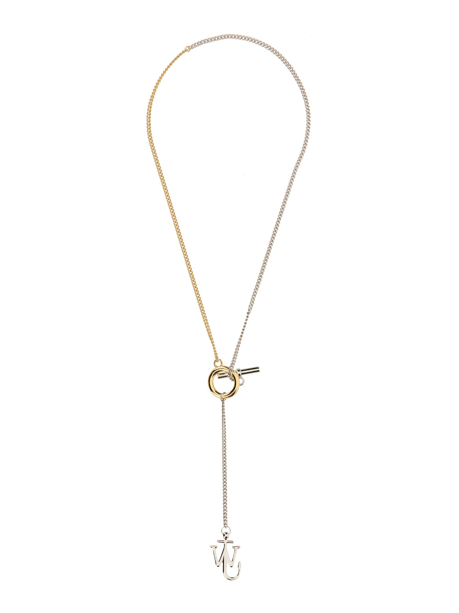 The anchor necklace from JW Anderson is a brass metal detail charm on a golden chain. It is the perfect piece to add to any necklace to show your love of the sea. A very classic, elegant and luxurious necklace made with brass. The necklace is a light and airy piece, perfect for any day or night occasion.