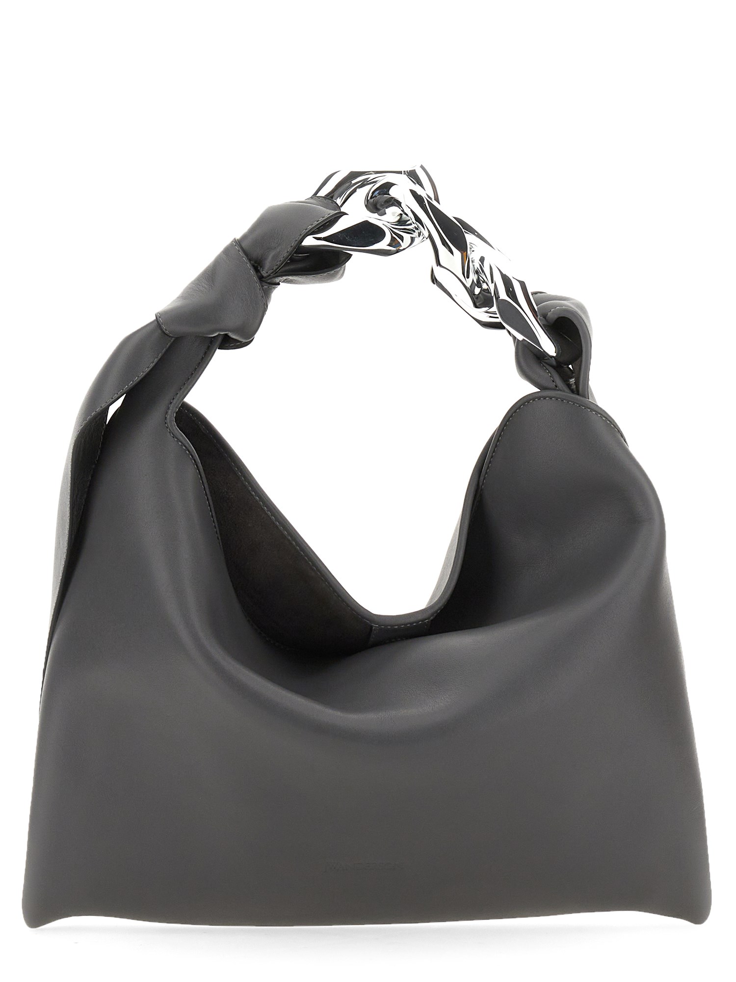 The small chain hobo bag from JW Anderson is the perfect handbag for those who want a bag that is simple and stylish. Adorned with a front logo, the bag features a top handle with three large chain links that are perfect for your day and night outings. The bag is designed with an adjustable knot on the side of the chain and a magnetic closure.