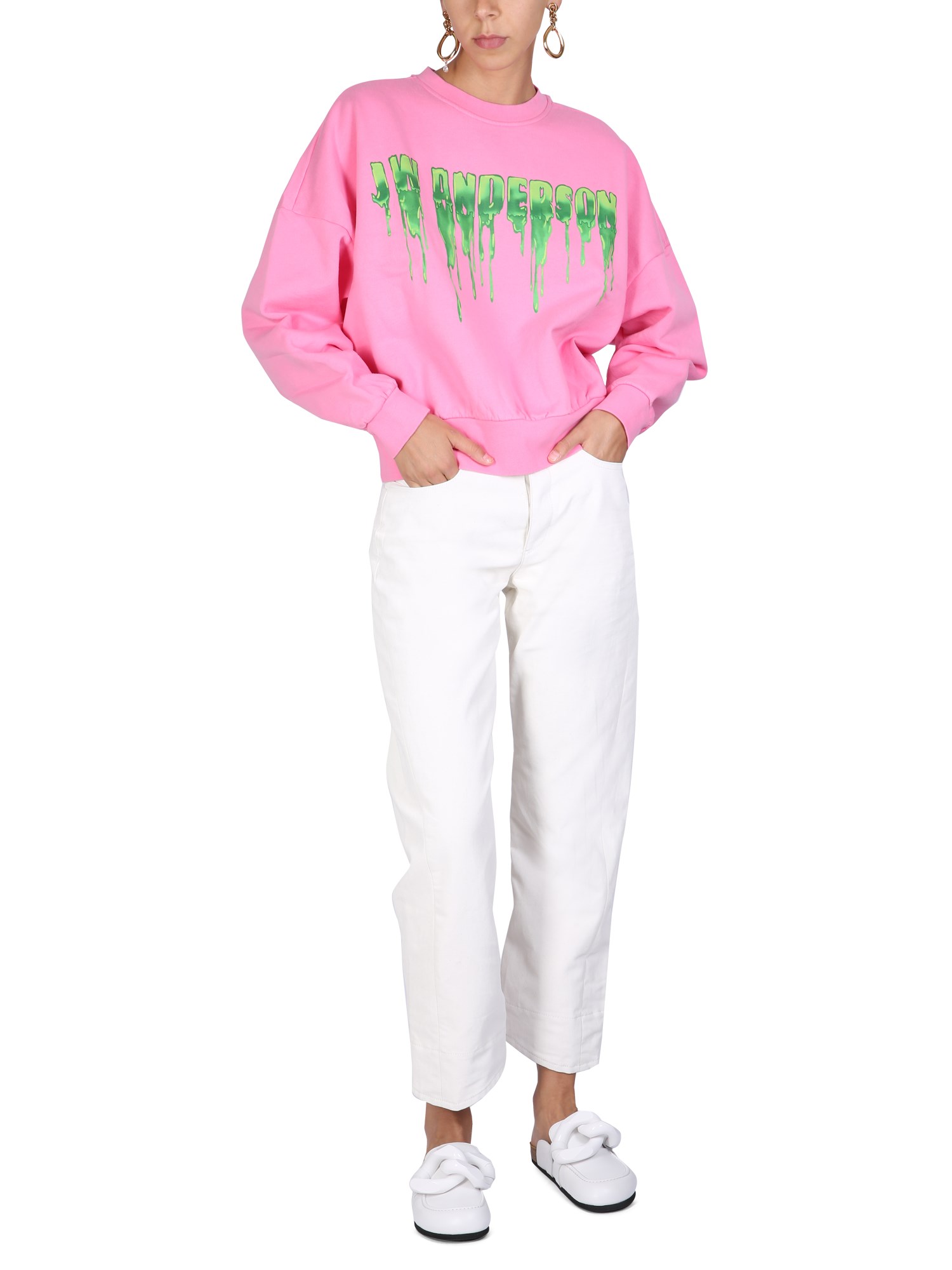 This slim-fit sweatshirt by JW Anderson is perfect for the cool weather. With a slim fit and its graphic logo, this shirt is a must-have for any slime fan. With its colourful designs and playful images, this brand is perfect for the season. The slim logo print sweatshirt is a must-have in your closet.