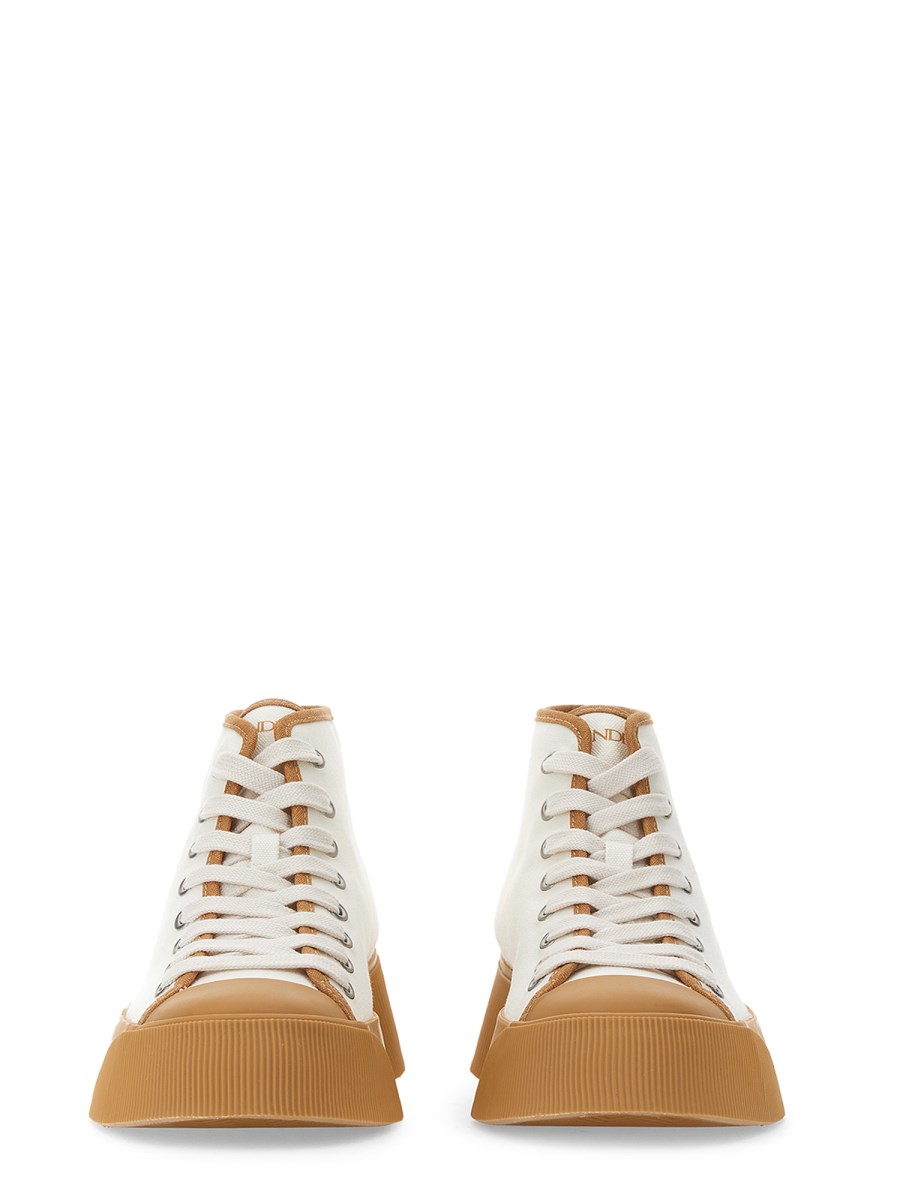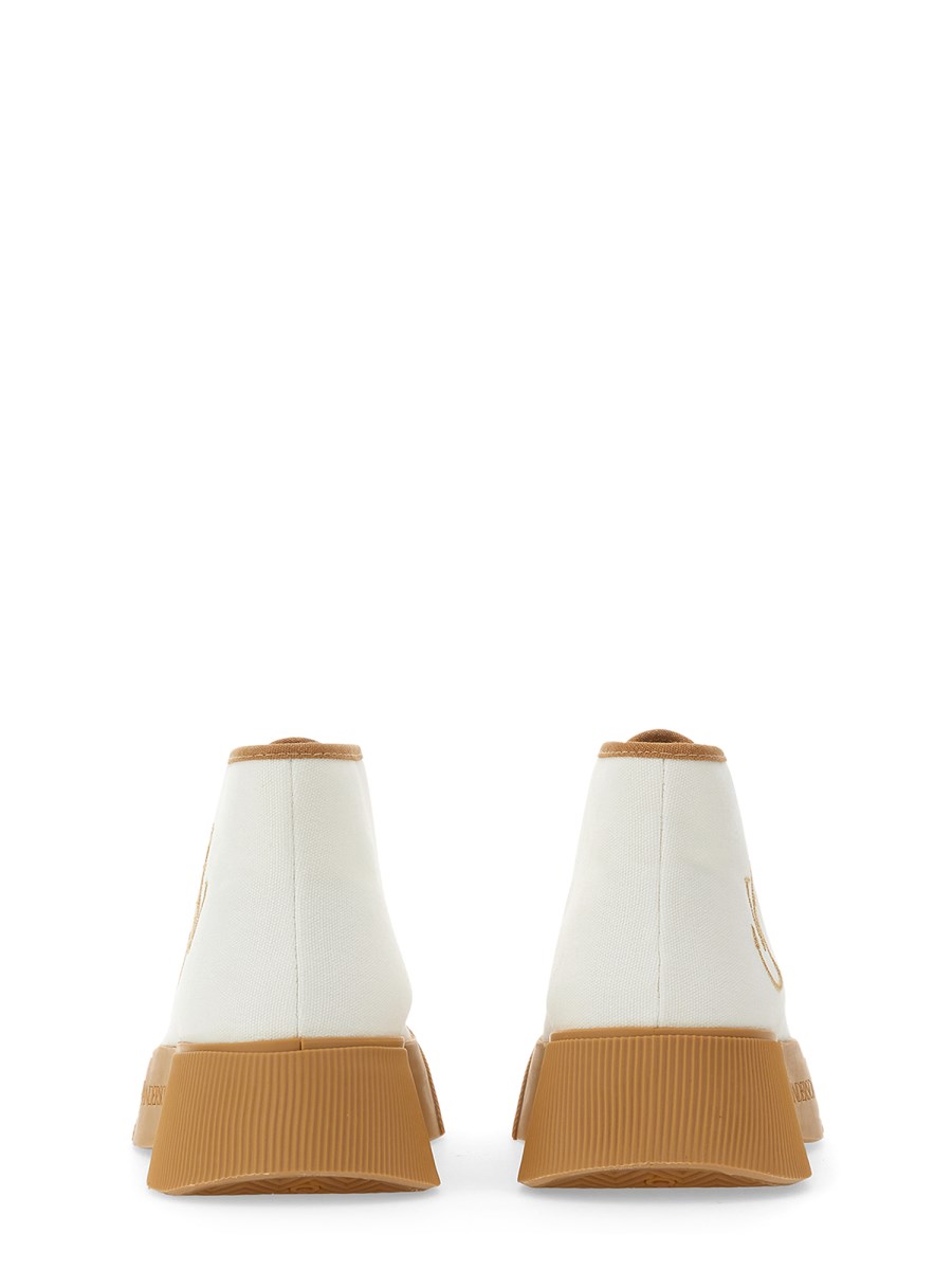 These casual sneakers from JW Anderson are great for running errands around town, and also for working out at the gym. The sneaker is made of a durable rubber sole and a cotton upper, which makes it a comfortable and breathable option for any activity. Lace up these high-top sneakers and feel confident in your walk