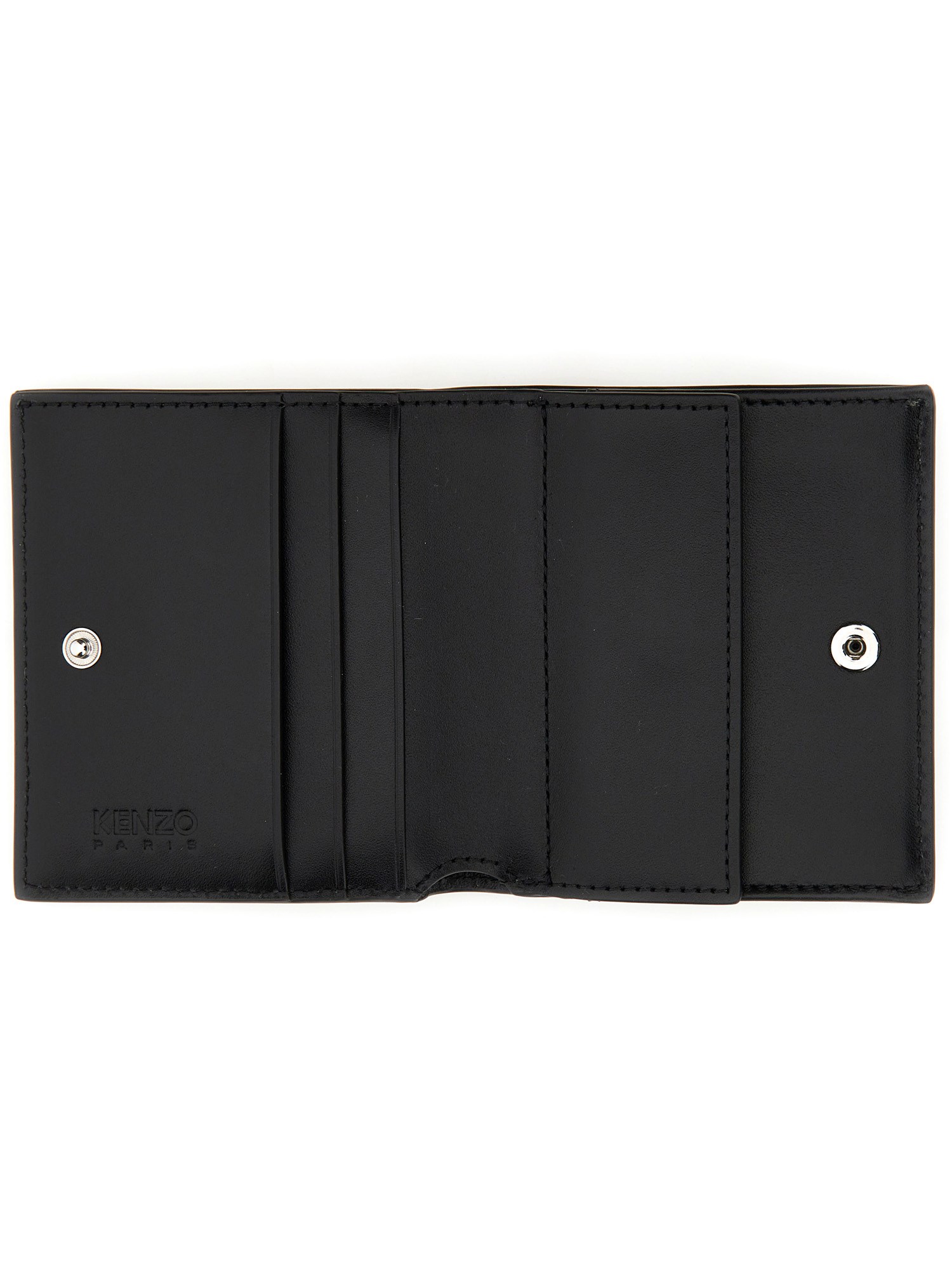 This wallet from Kenzo offers both functionality and aesthetics. The snap hook closure ensures that your valuables are securely stored in the wallet, providing peace of mind while on the go. Made from high-quality black leather, this wallet exudes elegance and durability, guaranteeing long-lasting use and a timeless appeal.