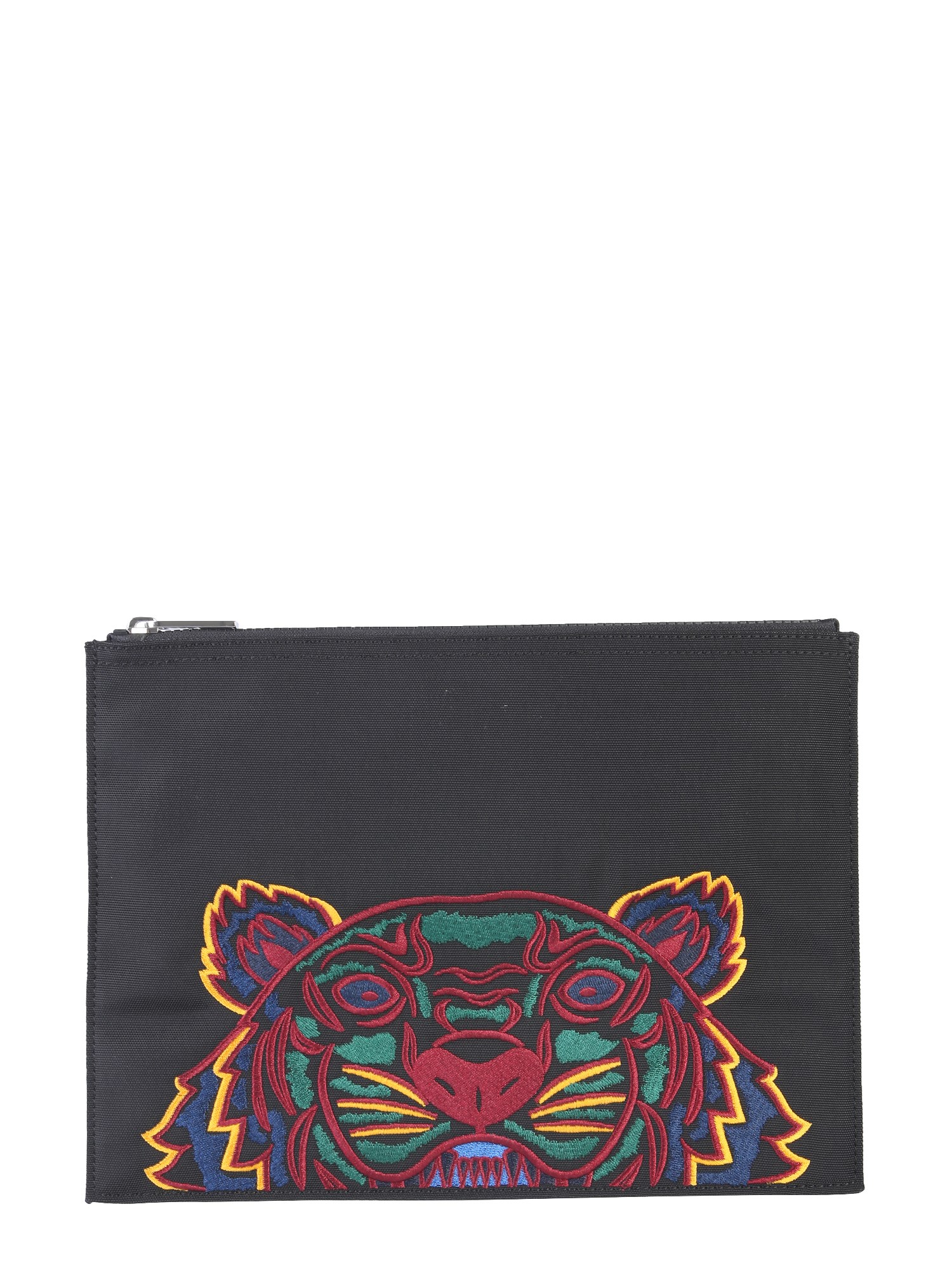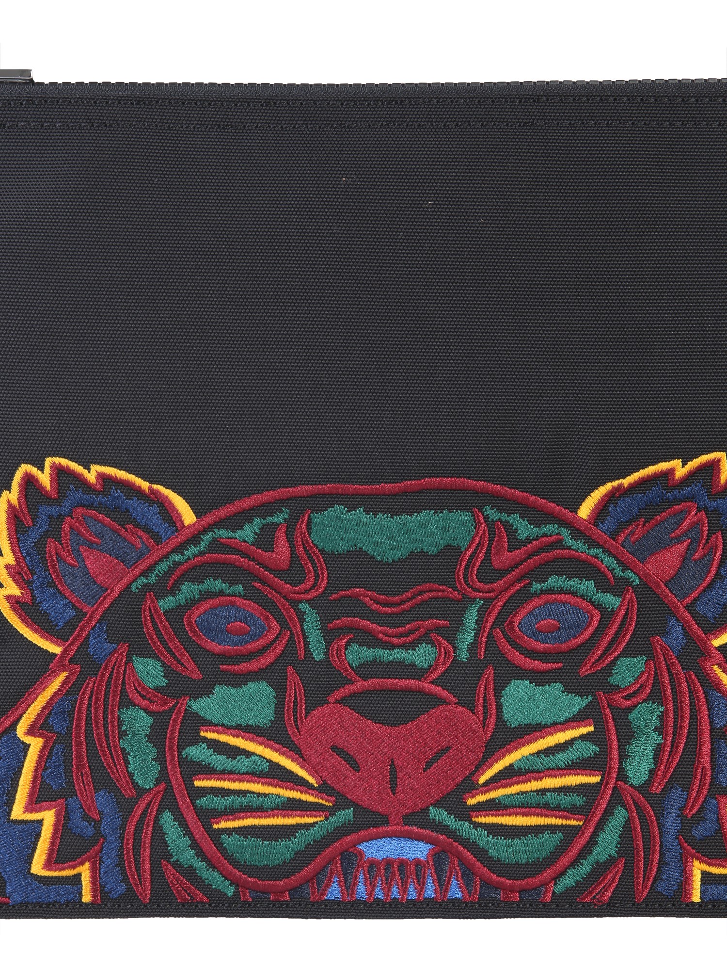 Move around with all your stuff and belongings stored securely in this large pouch by Kenzo. The pouch comes with an embroidered front that goes well with its polyester and nylon surface. It has a zip closure and lined interior that provide a safe storage space for your essentials.