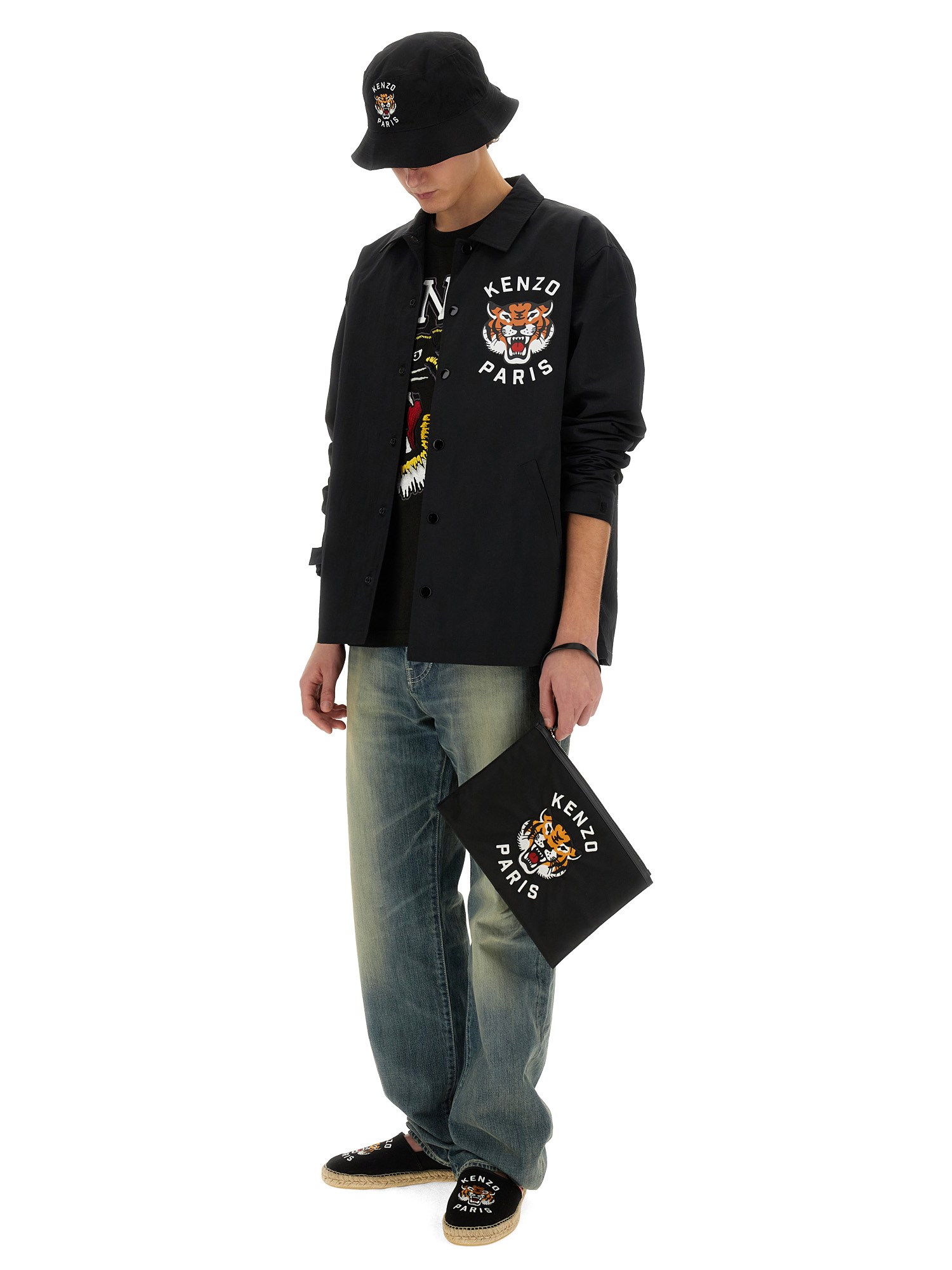 The Quilted Coach Jacket 'Kenzo Lucky Tiger' from Kenzo combines contemporary style with functional design, featuring a striking tiger motif that embodies the brand's bold aesthetic. Crafted from high-quality materials, this jacket offers warmth and comfort, making it ideal for transitional weather. Its quilted texture adds a sophisticated touch, while the relaxed fit ensures versatility for various occasions. Perfect for fashion-forward individuals, this jacket is a statement piece that showcases Kenzo's unique blend of artistry and practicality.
