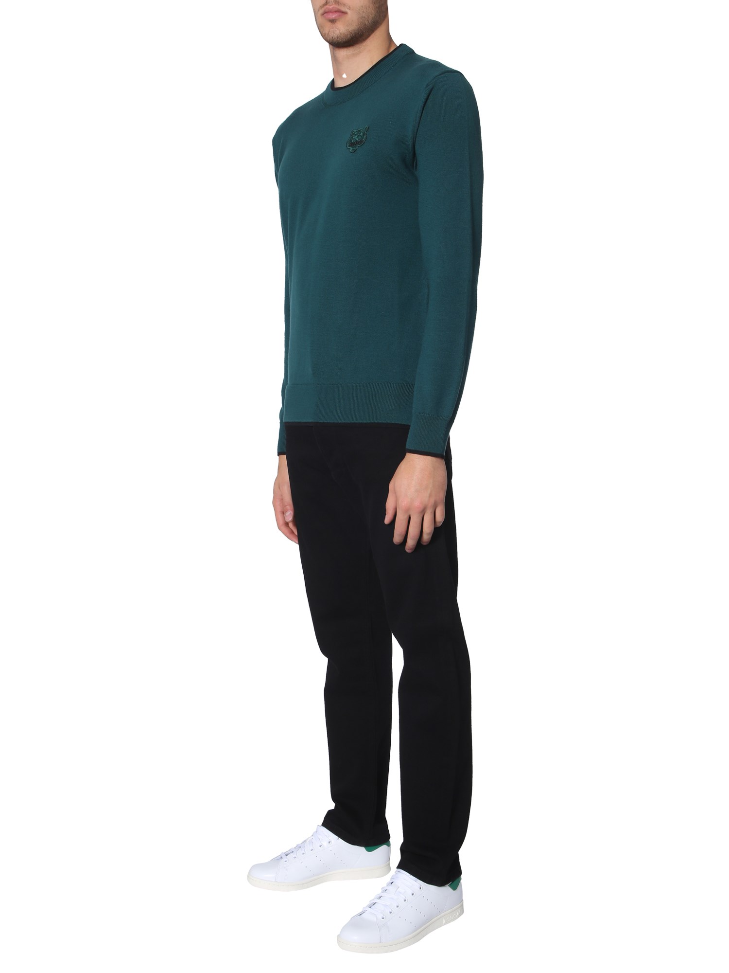 Raise your comfort level while keeping yourself warm by wearing this crew neck sweater from Kenzo. With a round neck and full sleeves, this sweater is perfect for your everyday look. It is made from a blend of wool and polyamide to ensure utmost warmth while feeling soft against your skin. With these simple features, the sweater will become your go-to apparel during winter. You can pair it with blue denim and sneakers for a complete look.