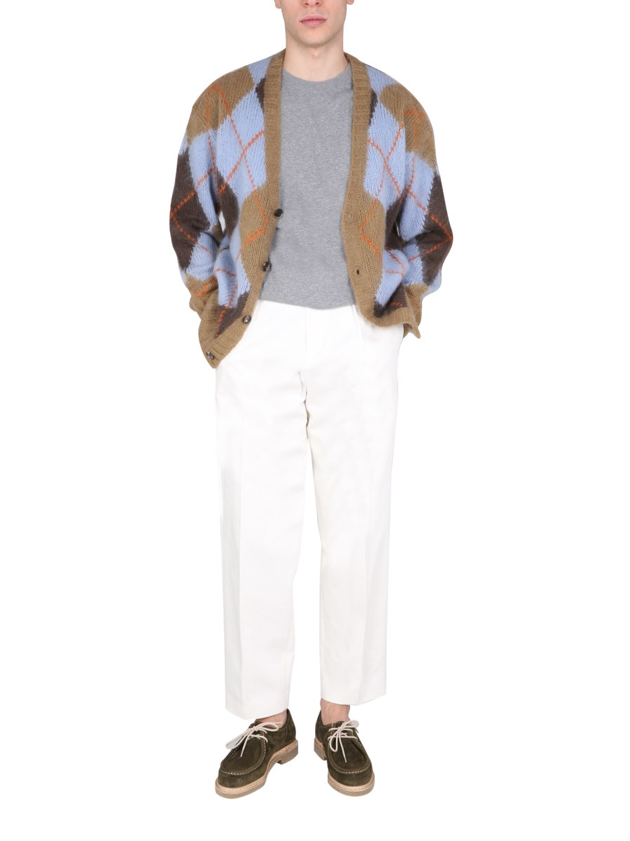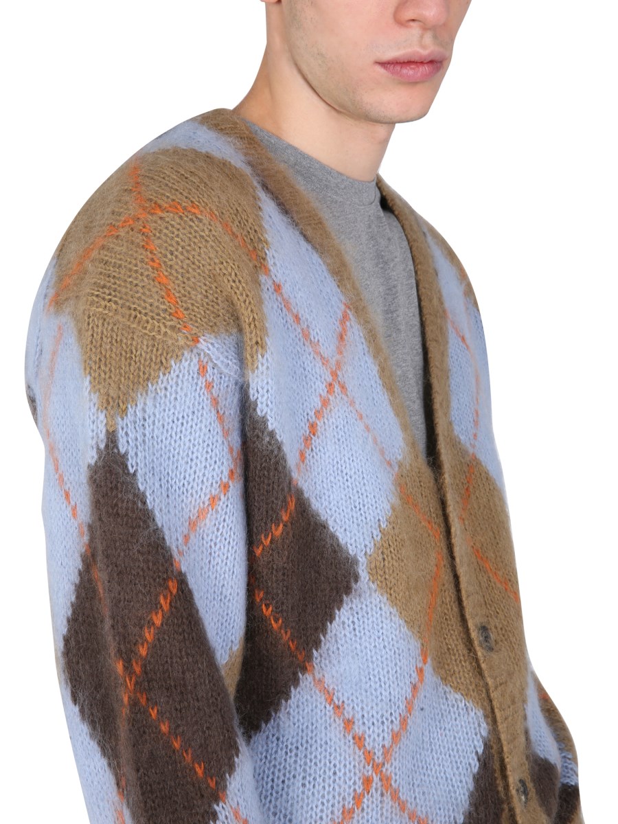 - V-NECK- FRONT BUTTON CLOSURE- RIBBED NECK, WRIST AND BOTTOM- 40% NYLON, 30% WOOL, 30% MOHAIR- MODEL IS 185 CM TALL AND WEARS SIZE M