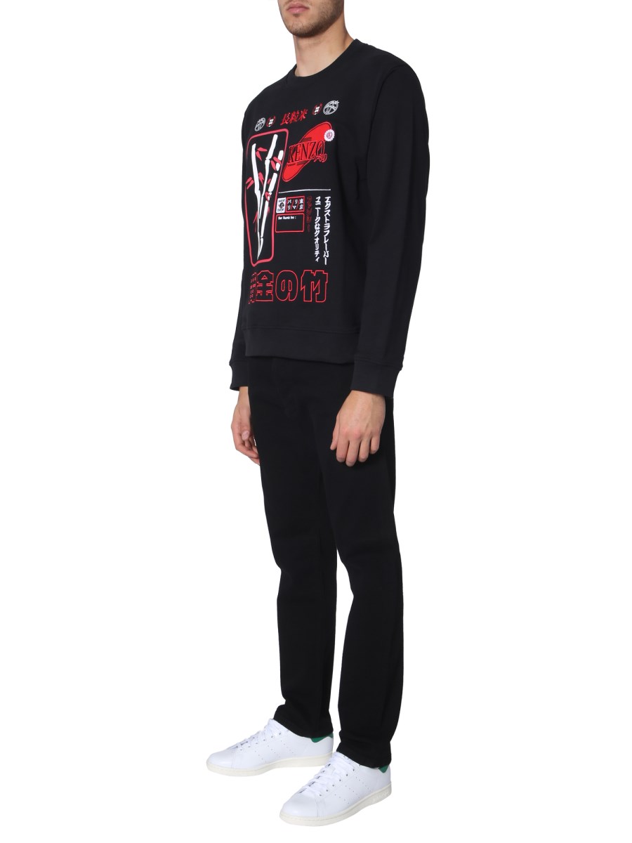 Crafted while keeping the latest trends in mind, this crew neck sweatshirt from Kenzo is an ideal pick for all the fashionable people out there. The sweatshirt is fabricated from breathable cotton fabric to stay dry while the brushed interior feels soft against your skin. It features a printed front panel with an embroidered branding.