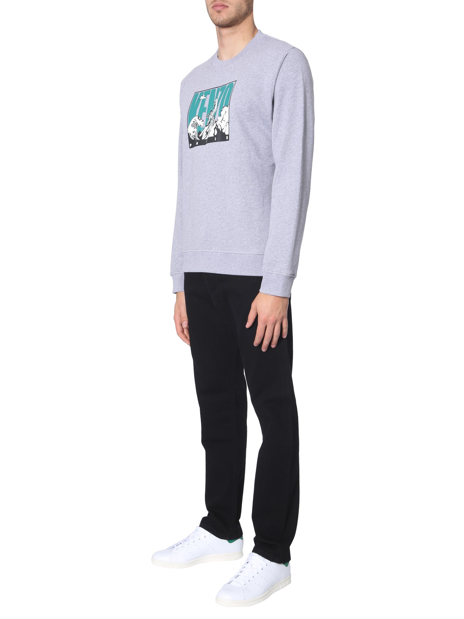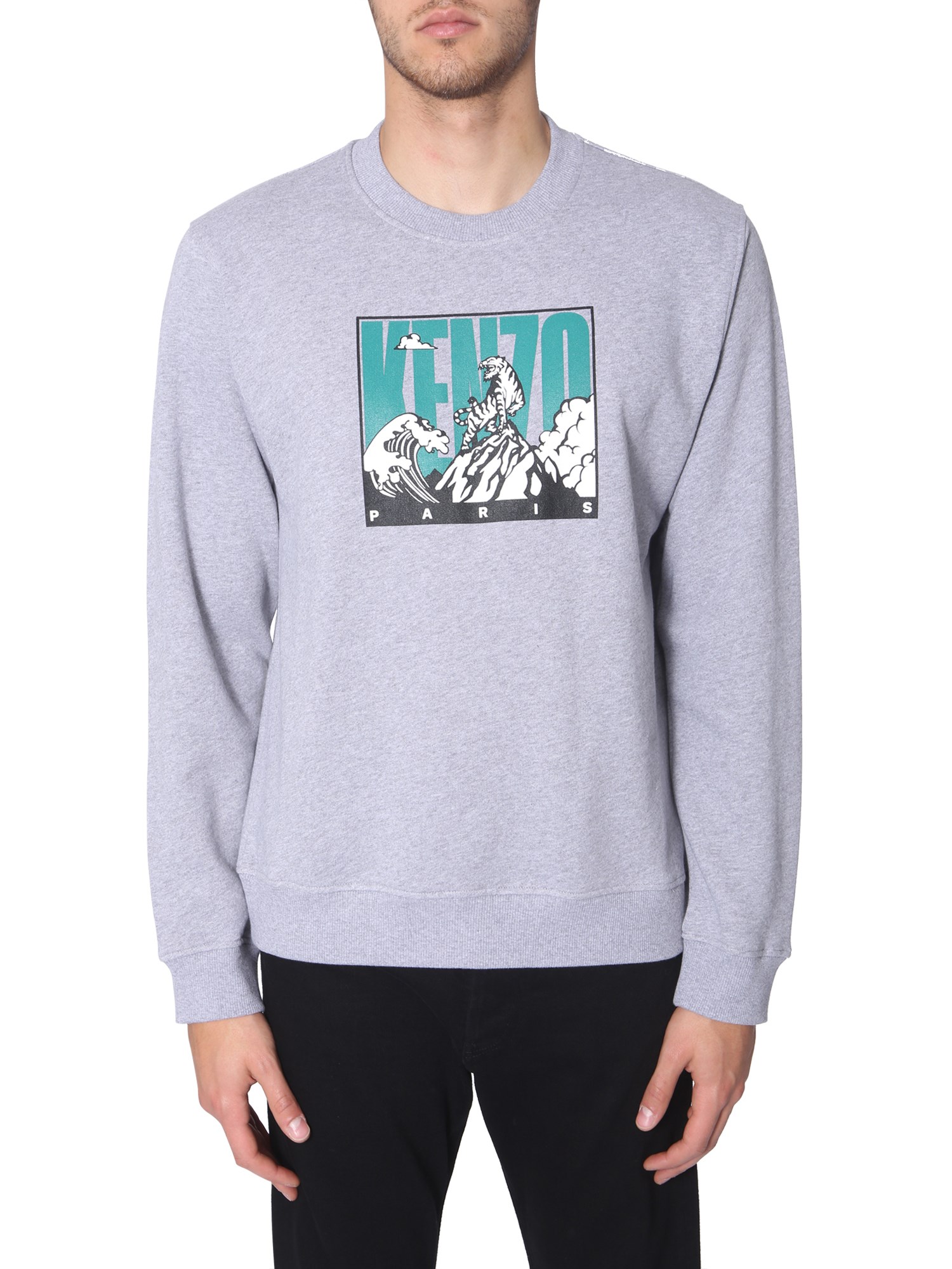 Upgrade your winter wear collection by adding this crew neck sweatshirt brought to you by Kenzo. This classic sweatshirt is fabricated from good quality cotton to ensure breathability. This regular-fit sweatshirt flaunts a funky print on the front panel to lend it an attractive look. You can pair this sweatshirt with a pair of black denim and sneakers.
