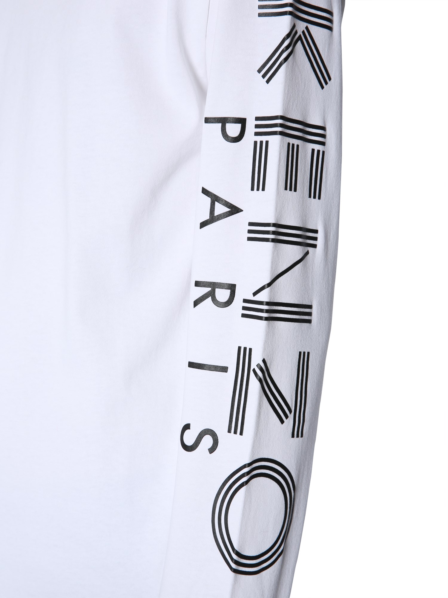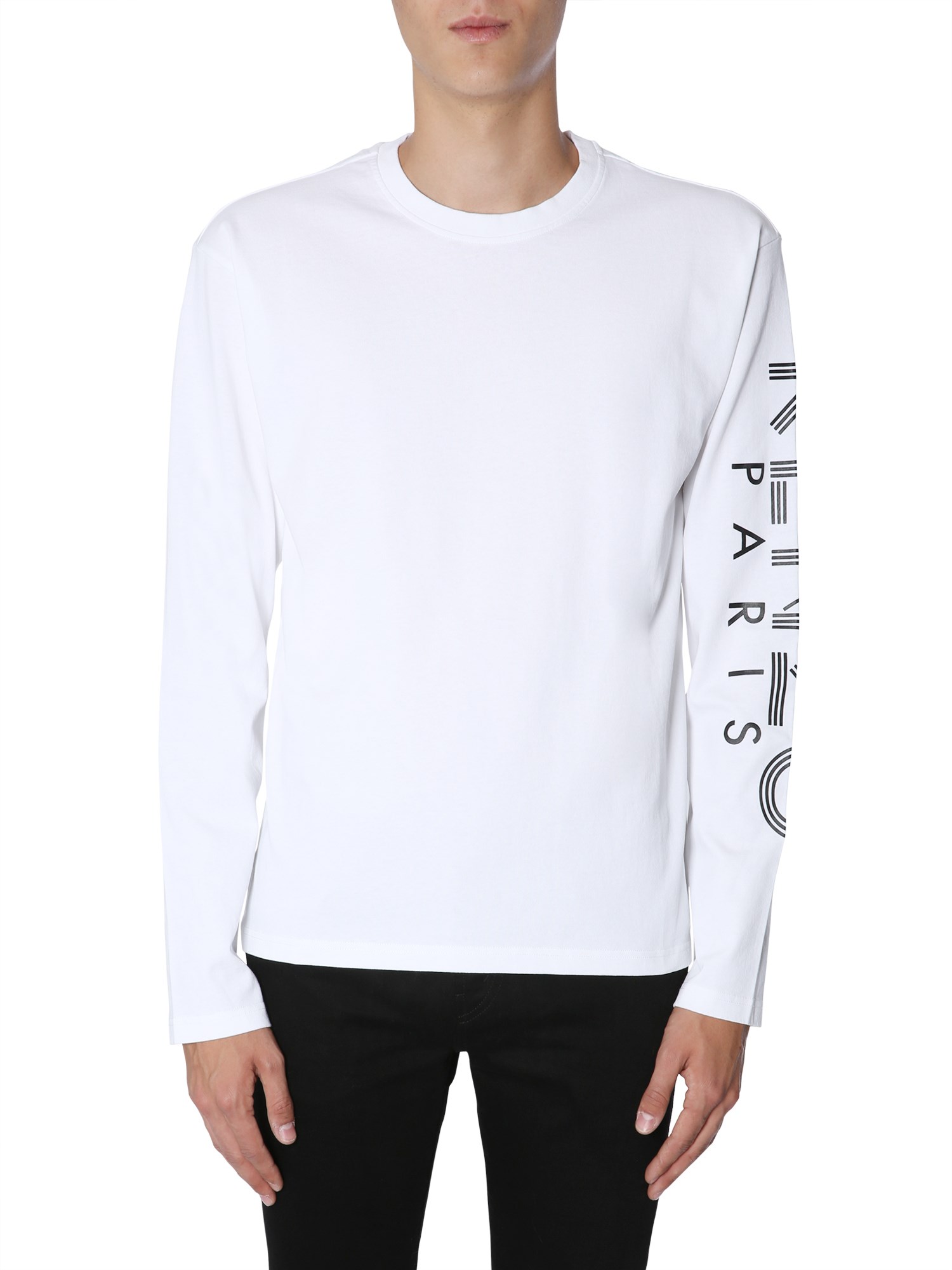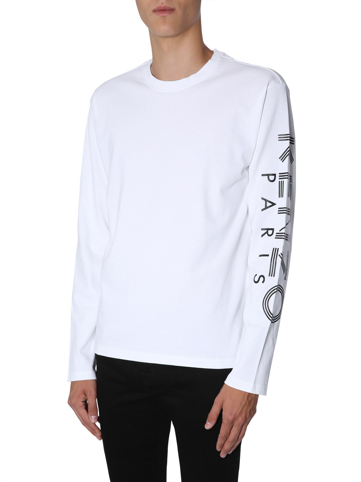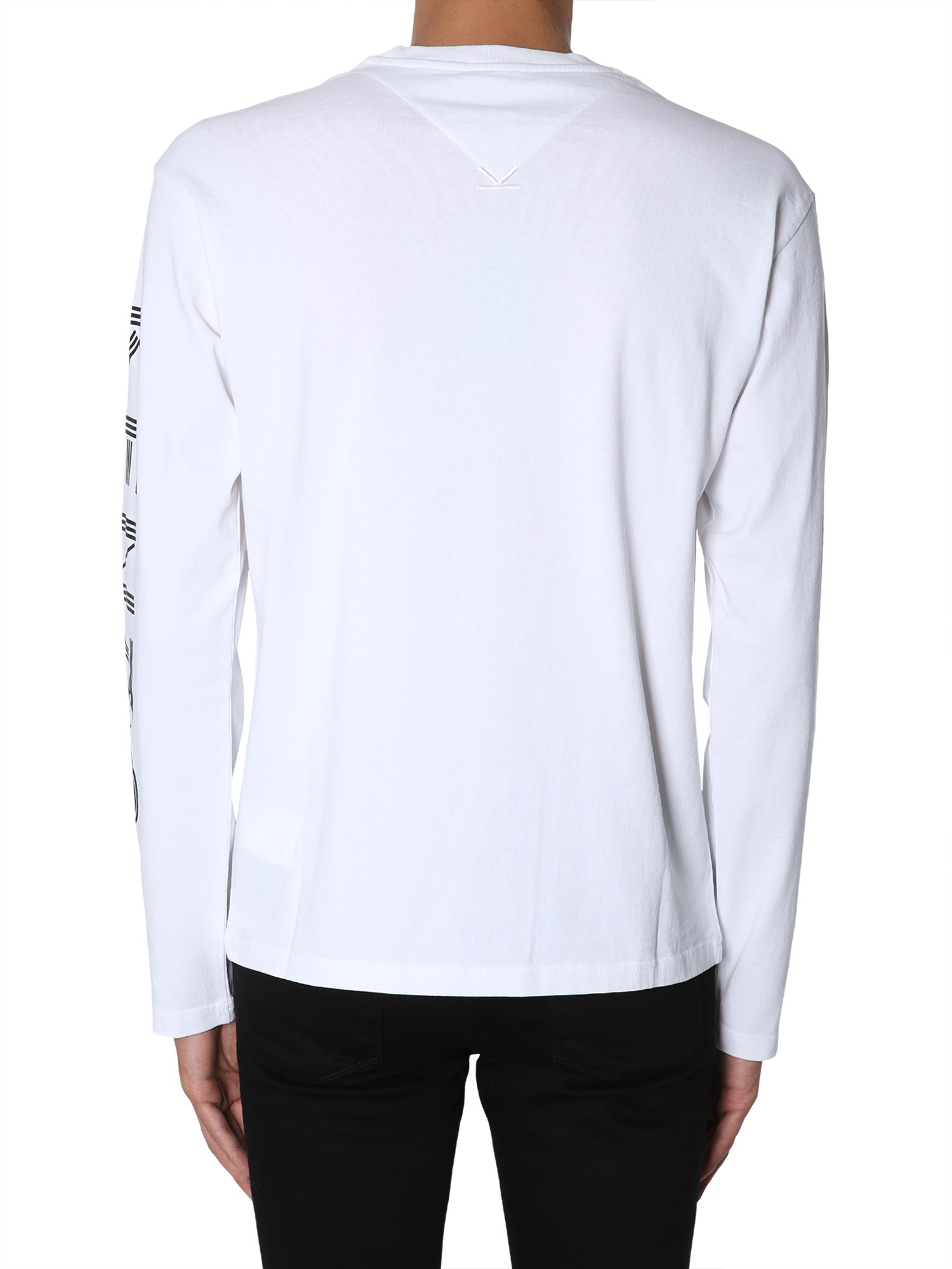 This summer, add this long sleeve T-shirt from Kenzo to your wardrobe. Having a plain and simple front panel, the T-shirt will become your go-to apparel in no time. It is made from good quality cotton that feels soft against your skin. Additionally, it features a printed logo on the left sleeve that aptly complements its light colour scheme.