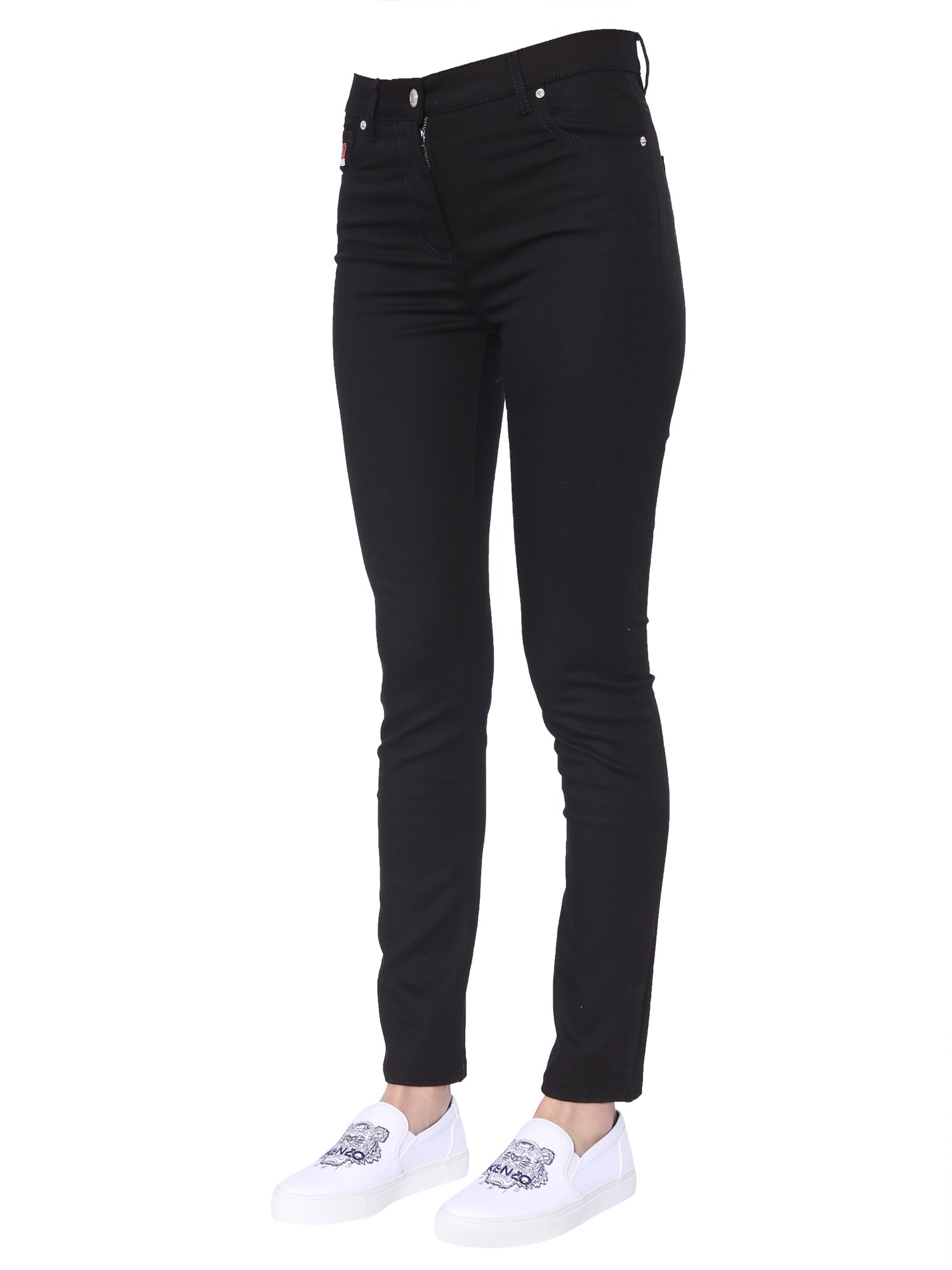 Look fashionable in this skinny fit jean by Kenzo. Made from a blend of 91% cotton, 7% elastomultiester and 2% elastane, the jeans is sure to provide you a perfect skinny fit. Classic details of hidden closure with zip and button and a denim stretch complete the style of this jeans. Flexible and comfortable fabric makes it a suitable addition to your everyday wearables. Its five pockets offer ample storage for your belongings.
