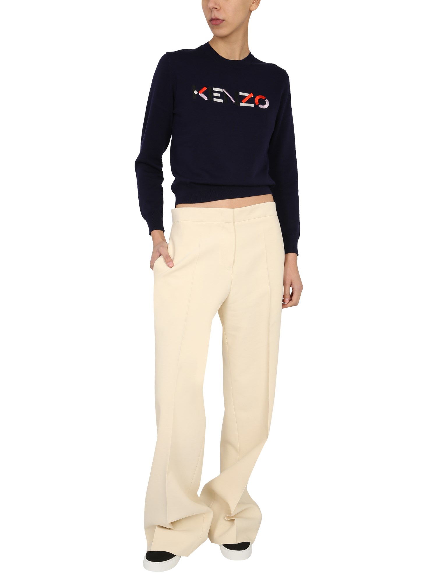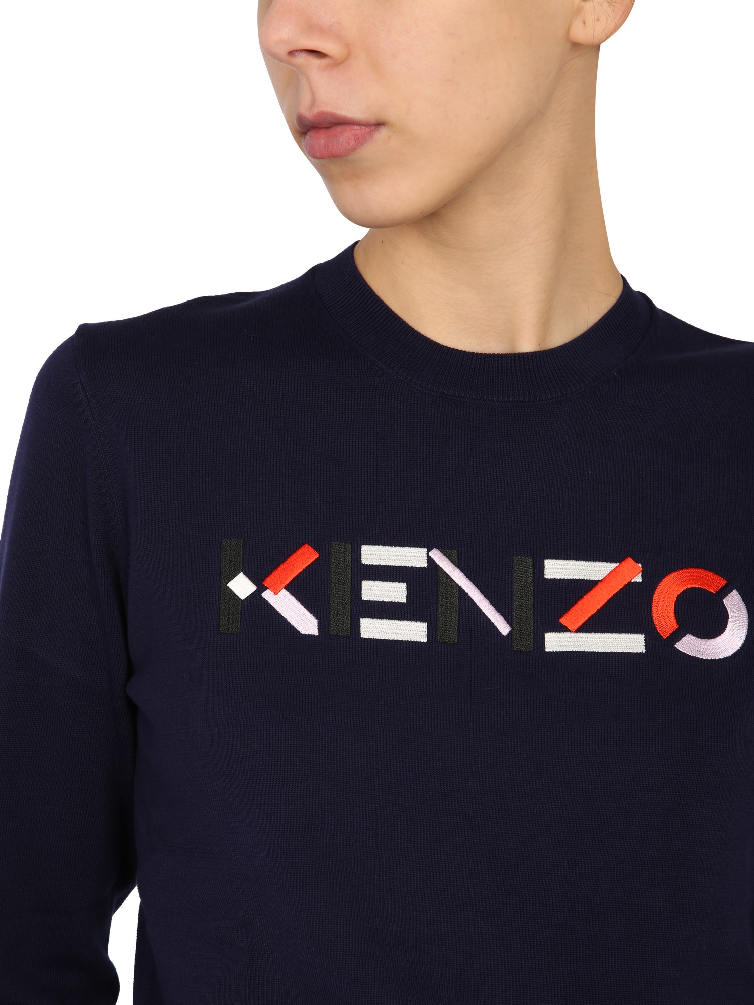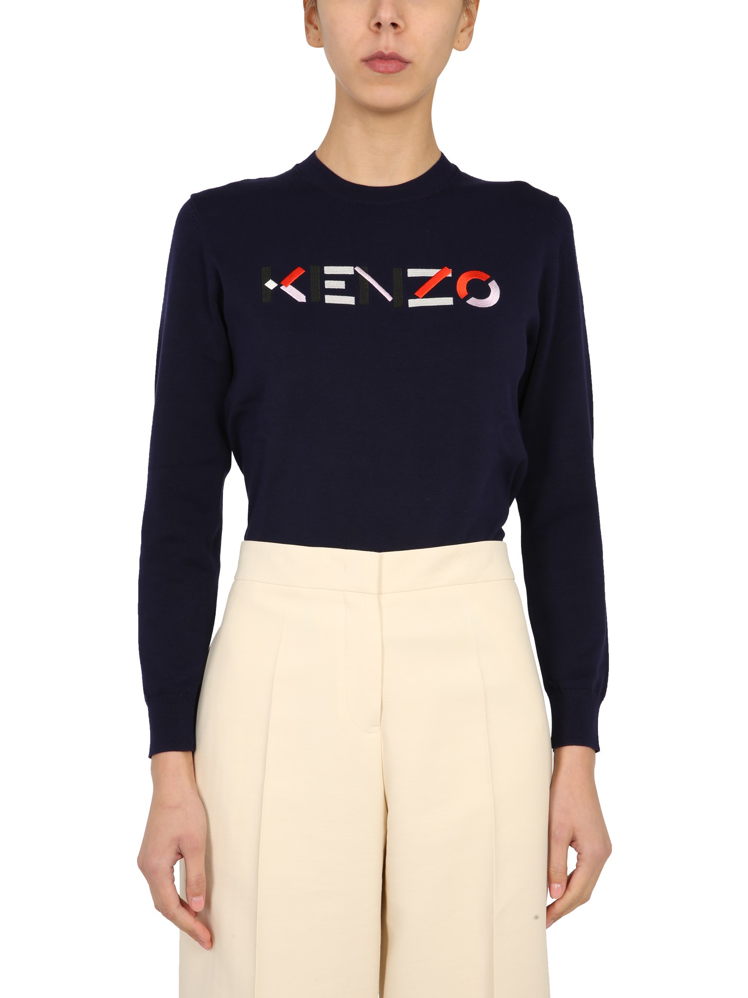 Elevate your casual style and at the same time celebrate exceptional comfort wearing this Crew Neck Sweater from the well-known luxury brand, Kenzo. Fashioned with the ribbed crew neck and long sleeves, the sweater highlights a striking multi-coloured logo embroidered on the front. The ribbed cuffs and hem of this cotton sweater offer you a secure fit, protecting you from the chill of those colder months.