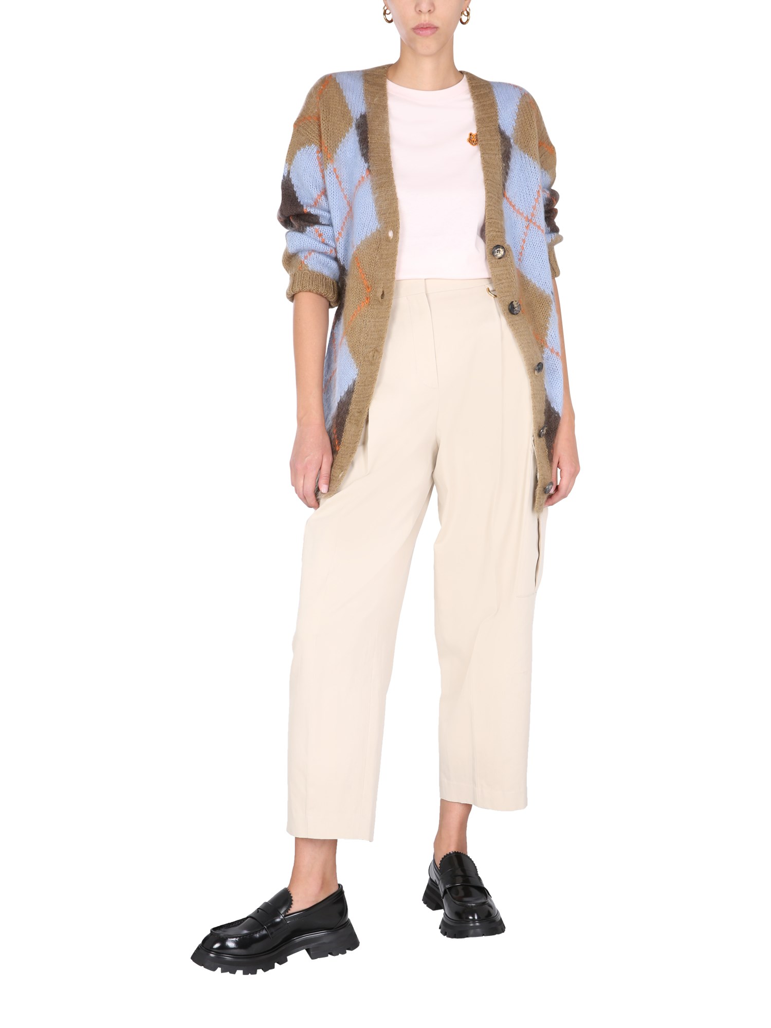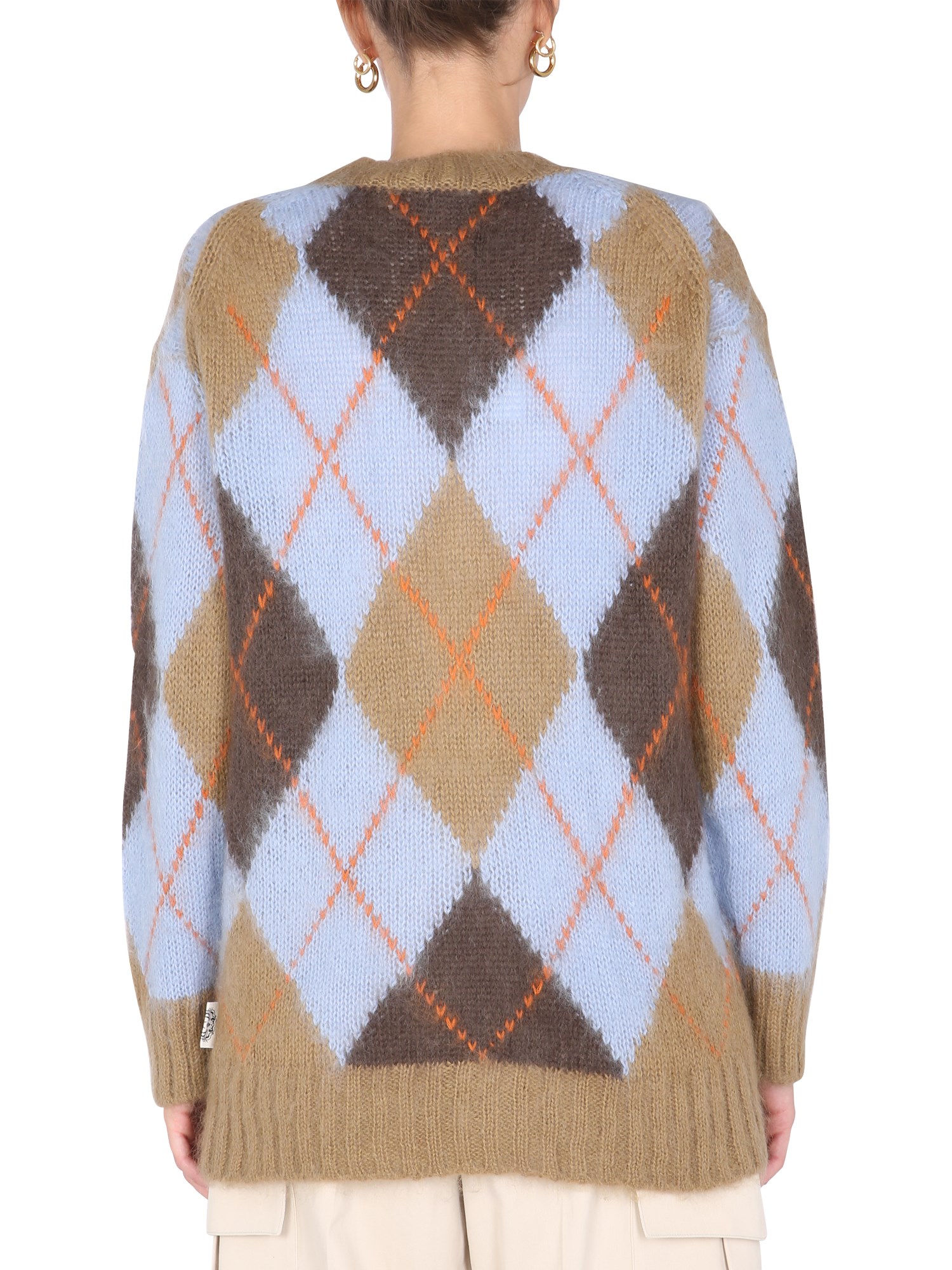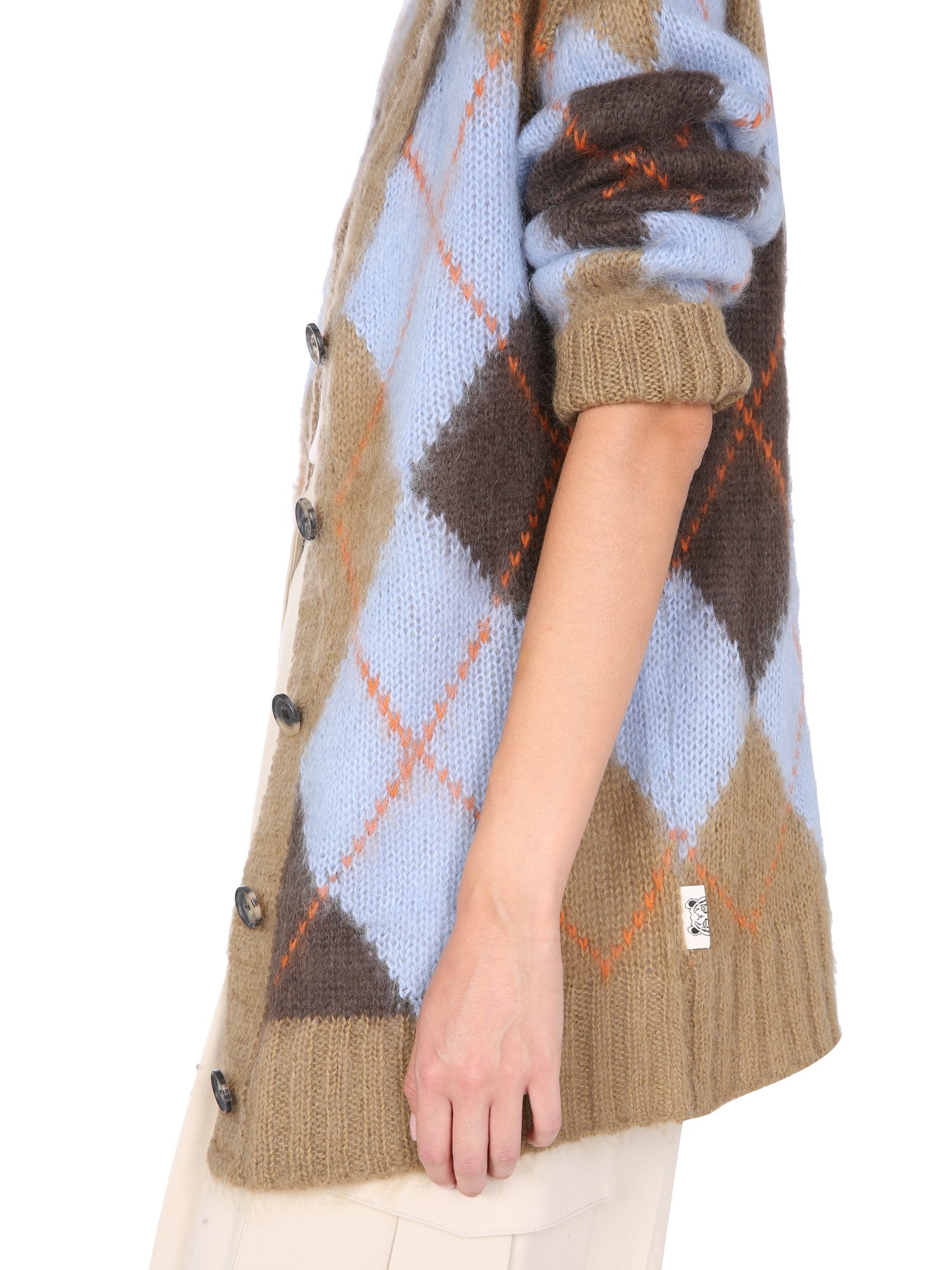 - V-NECK- FRONT BUTTON CLOSURE- RIBBED NECK, WRIST AND BOTTOM- 40% NYLON, 30% WOOL, 30% MOHAIR- MODEL IS 180 CM TALL AND WEARS SIZE S
