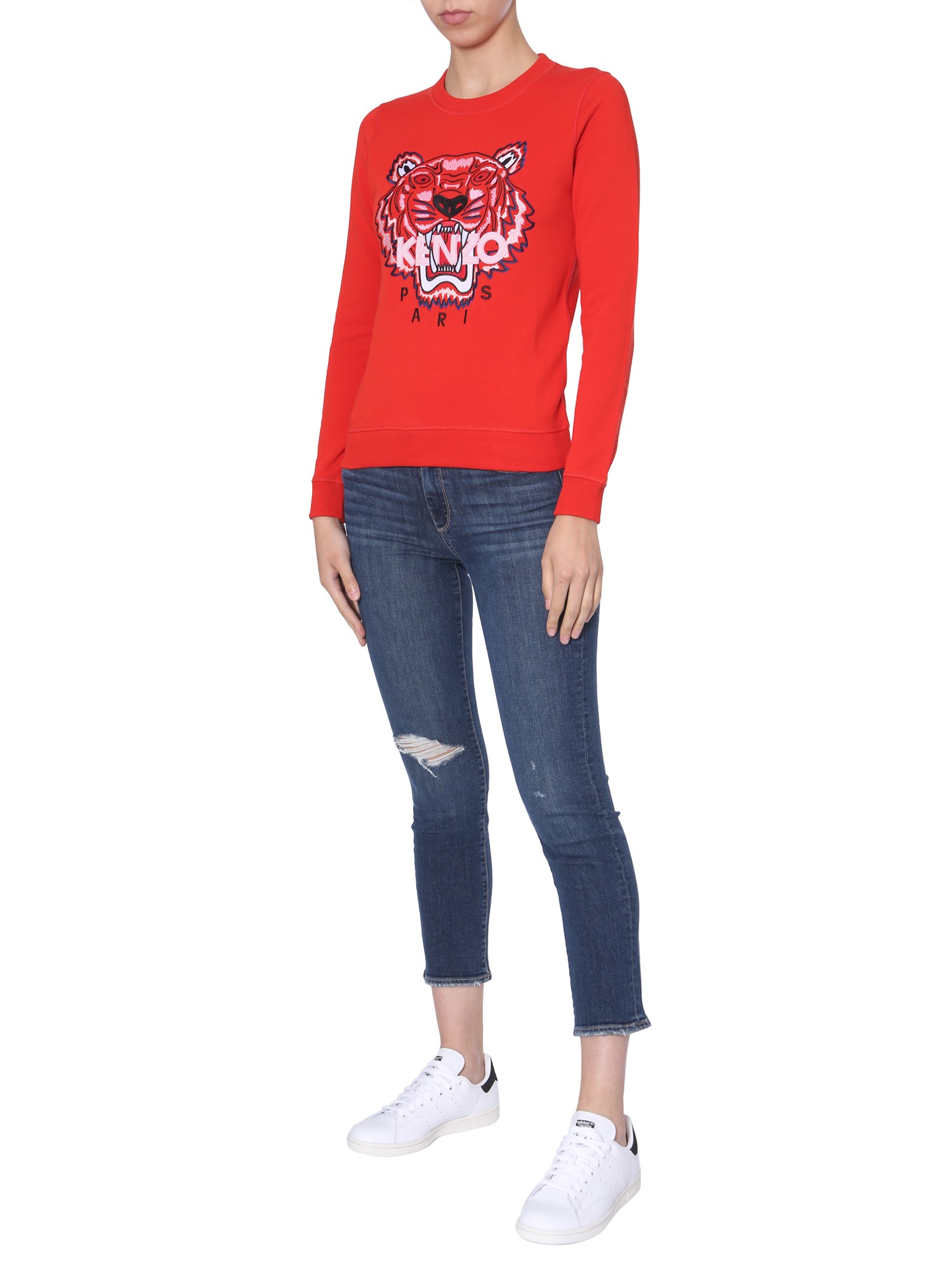 Kenzo presents this extremely comfortable and soft crew neck sweatshirt to update your wardrobe. The sweatshirt is fabricated from good quality cotton that ensures breathability. This slim-fit sweatshirt comes with a printed front panel. Its funky shade lets you pair it with dark blue denim and white sneakers for a complete look.