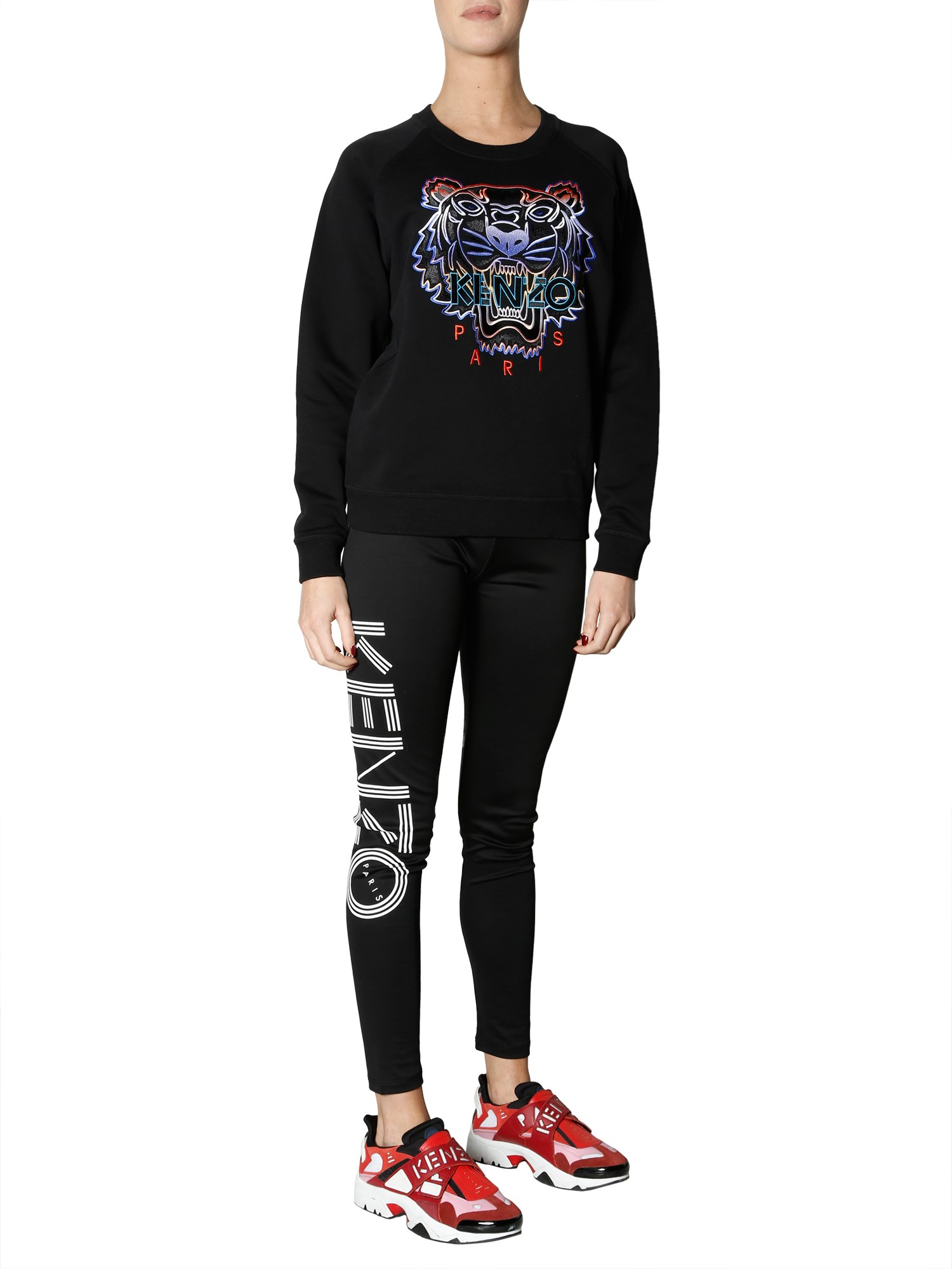 Hit the gym or head for morning exercise in this sweatshirt with embroidered tiger from Kenzo. The multicolour and vibrant embroidered design on the front aptly complements its dark shade. The lightweight cotton fabric provides a soft feel against your skin. Pair it with comfortable trousers and sports shoes to complete the look.