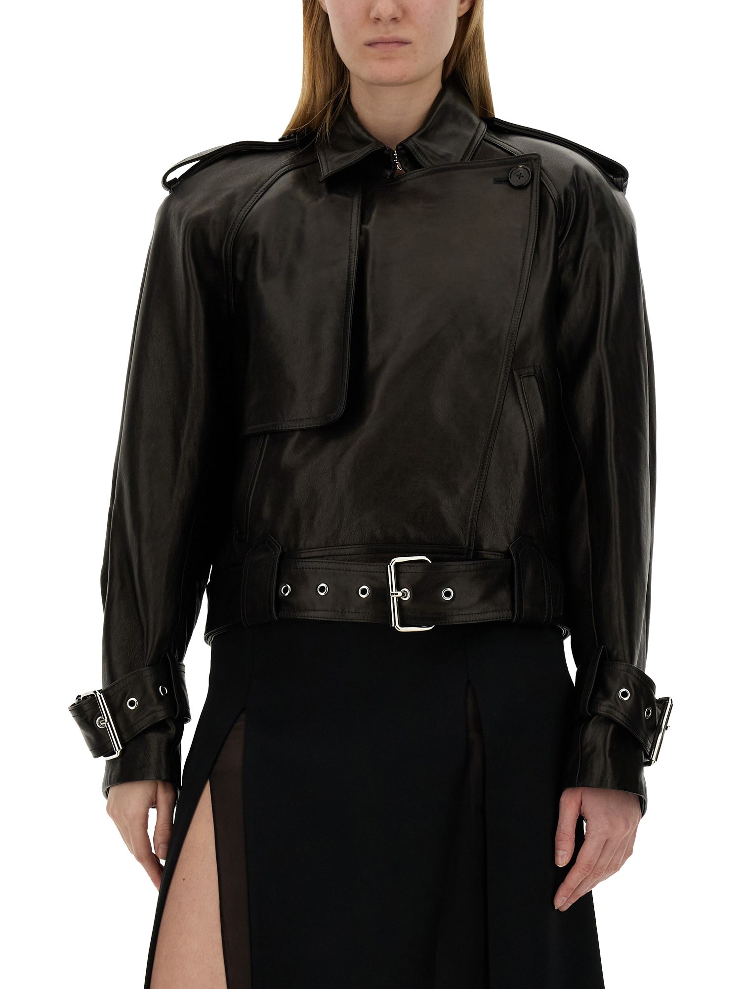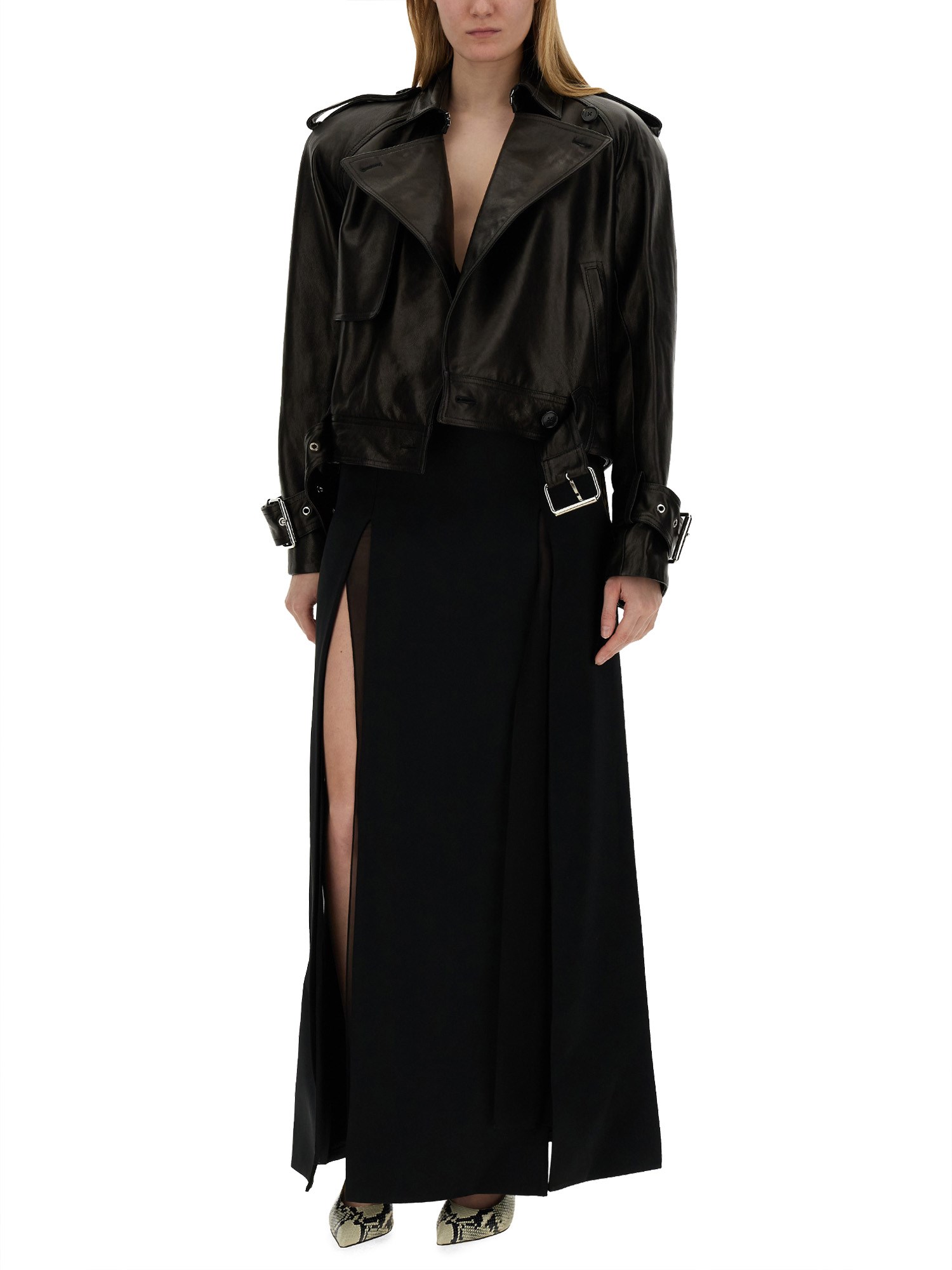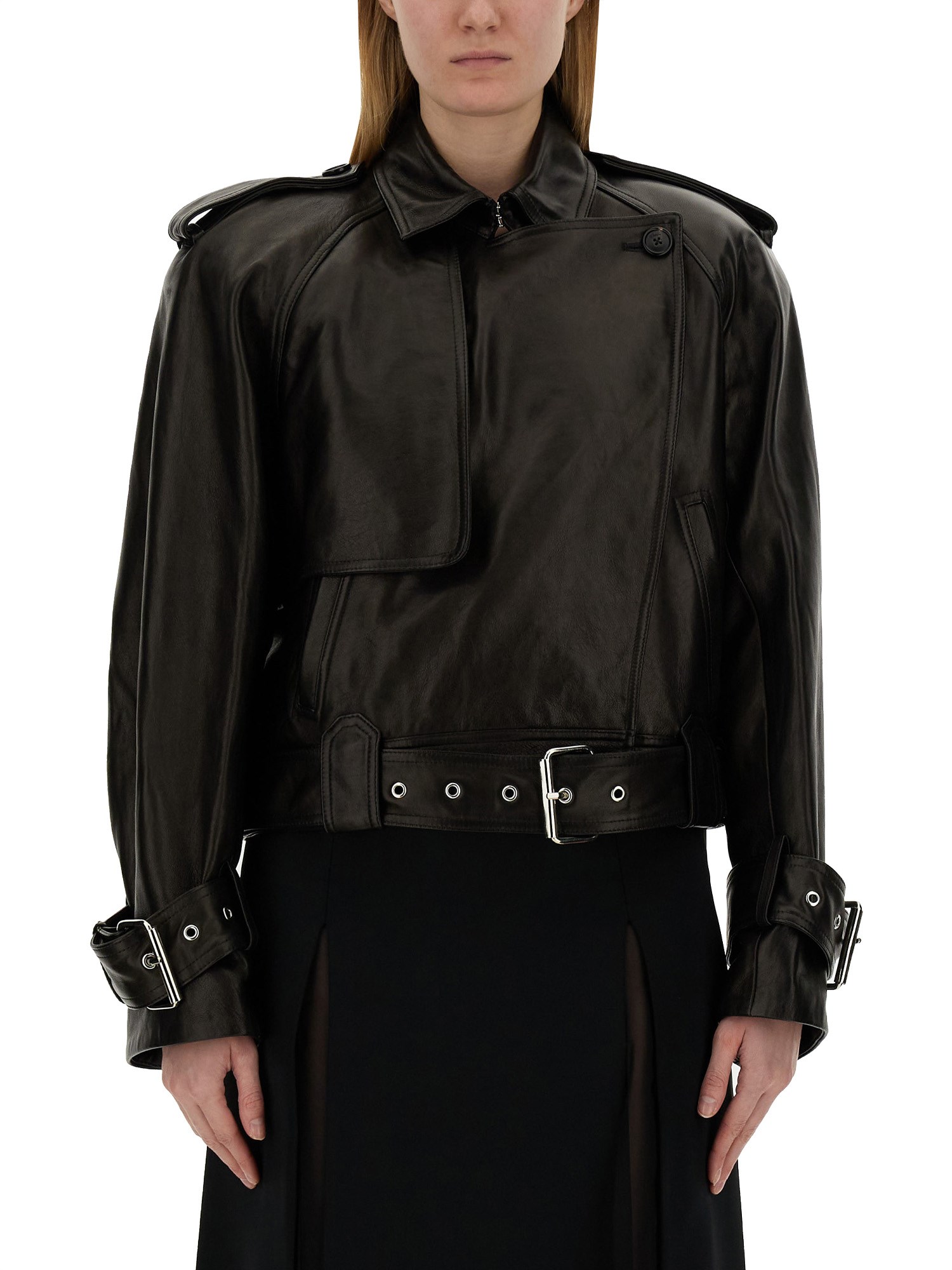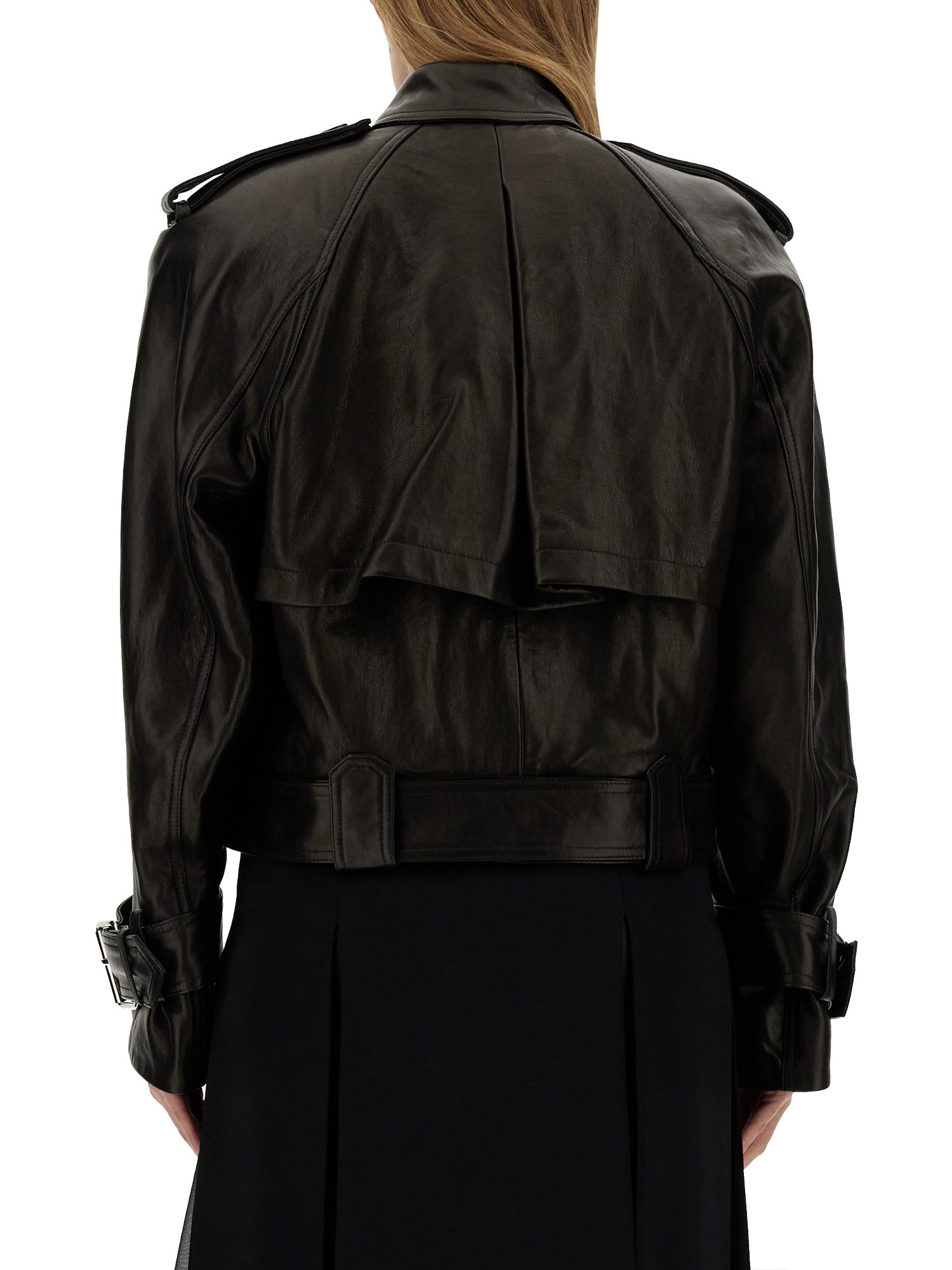 Elevate your wardrobe with the luxurious lamb leather jacket from Khaite. Crafted with the finest materials, this jacket exudes sophistication and style. The sleek design and impeccable tailoring make it a versatile piece that can be dressed up or down for any occasion. With its buttery soft texture and timeless silhouette, this Khaite leather jacket is a must-have addition to your collection.