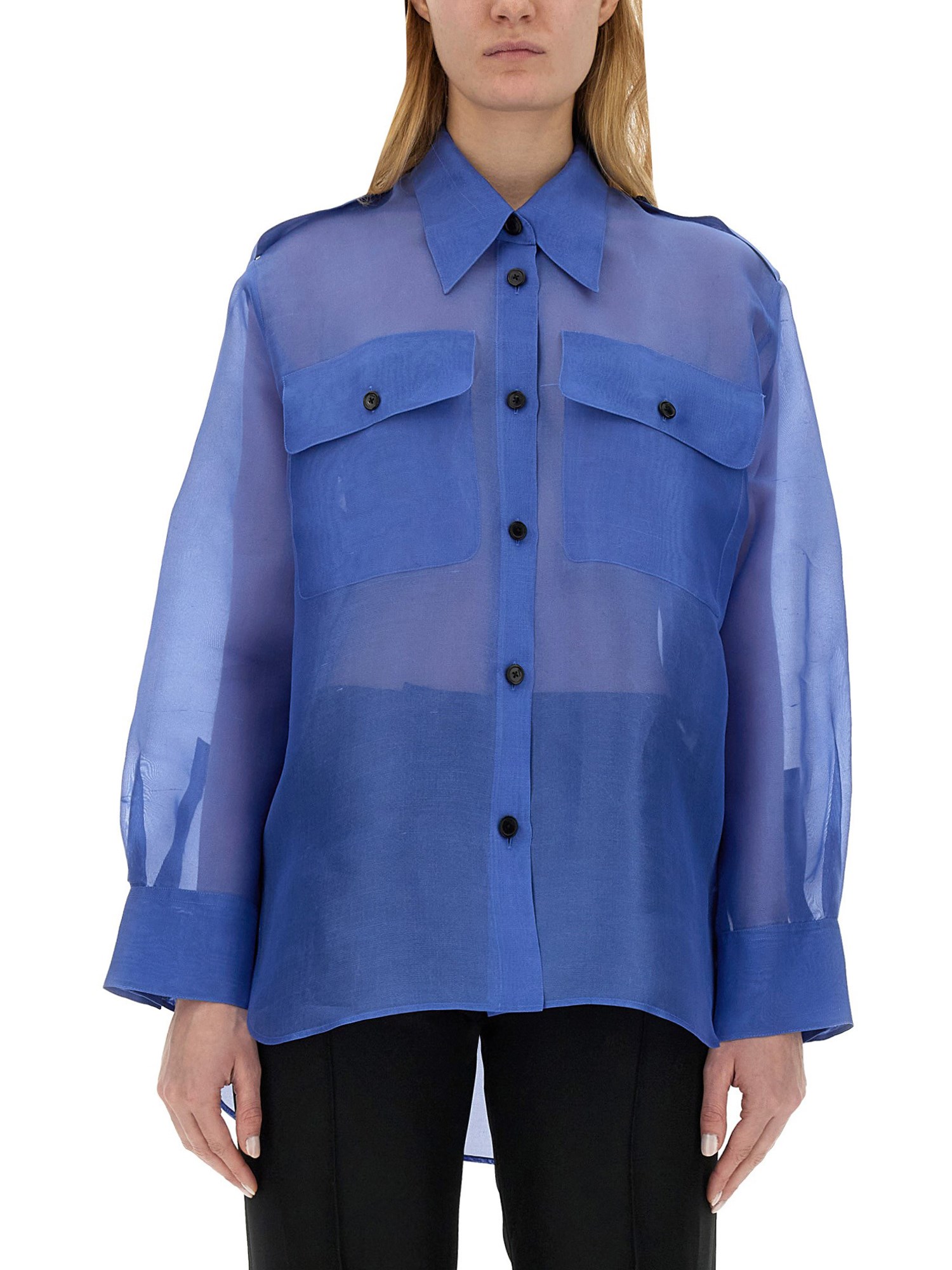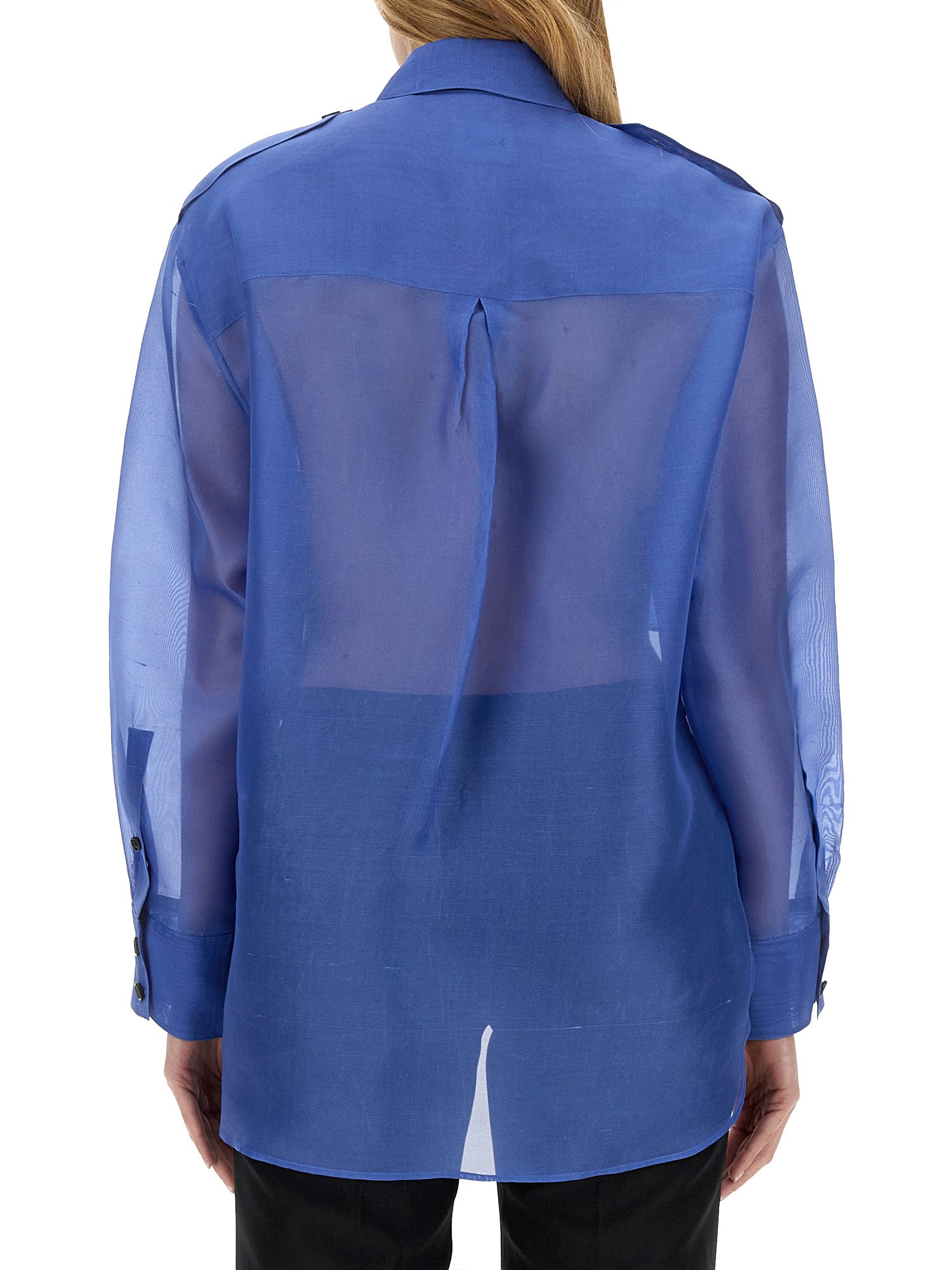 This elegant blue silk shirt from Khaite is a timeless addition to any wardrobe. The luxurious fabric drapes beautifully, while the classic collar and button-up front add a touch of sophistication. Perfect for both formal and casual occasions, this shirt is a versatile and stylish choice. Whether paired with tailored trousers for the office or with jeans for a more relaxed look, this shirt is sure to elevate any outfit.