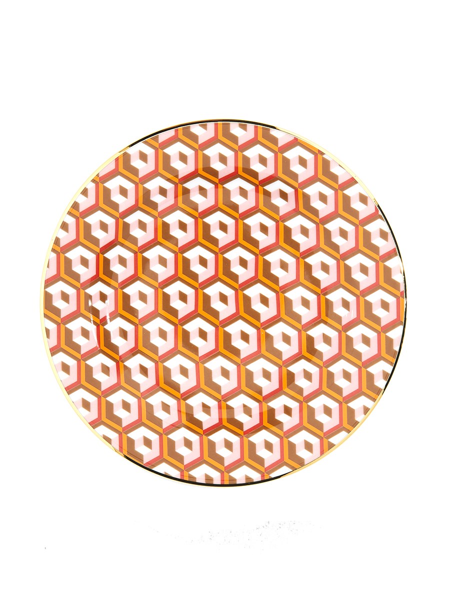 PORCELAIN DESSERT PLATE CUBES MIX SET OF SIX