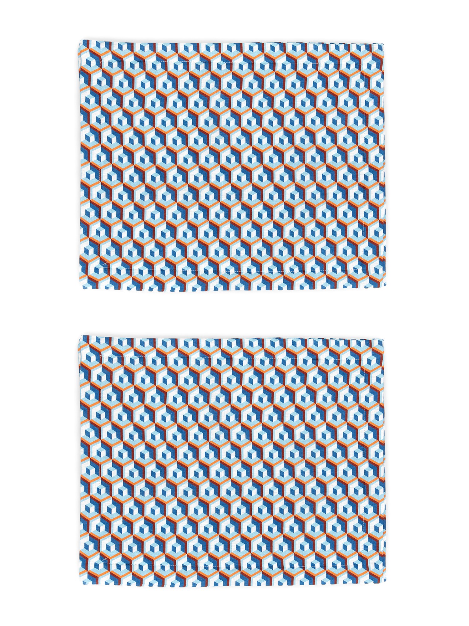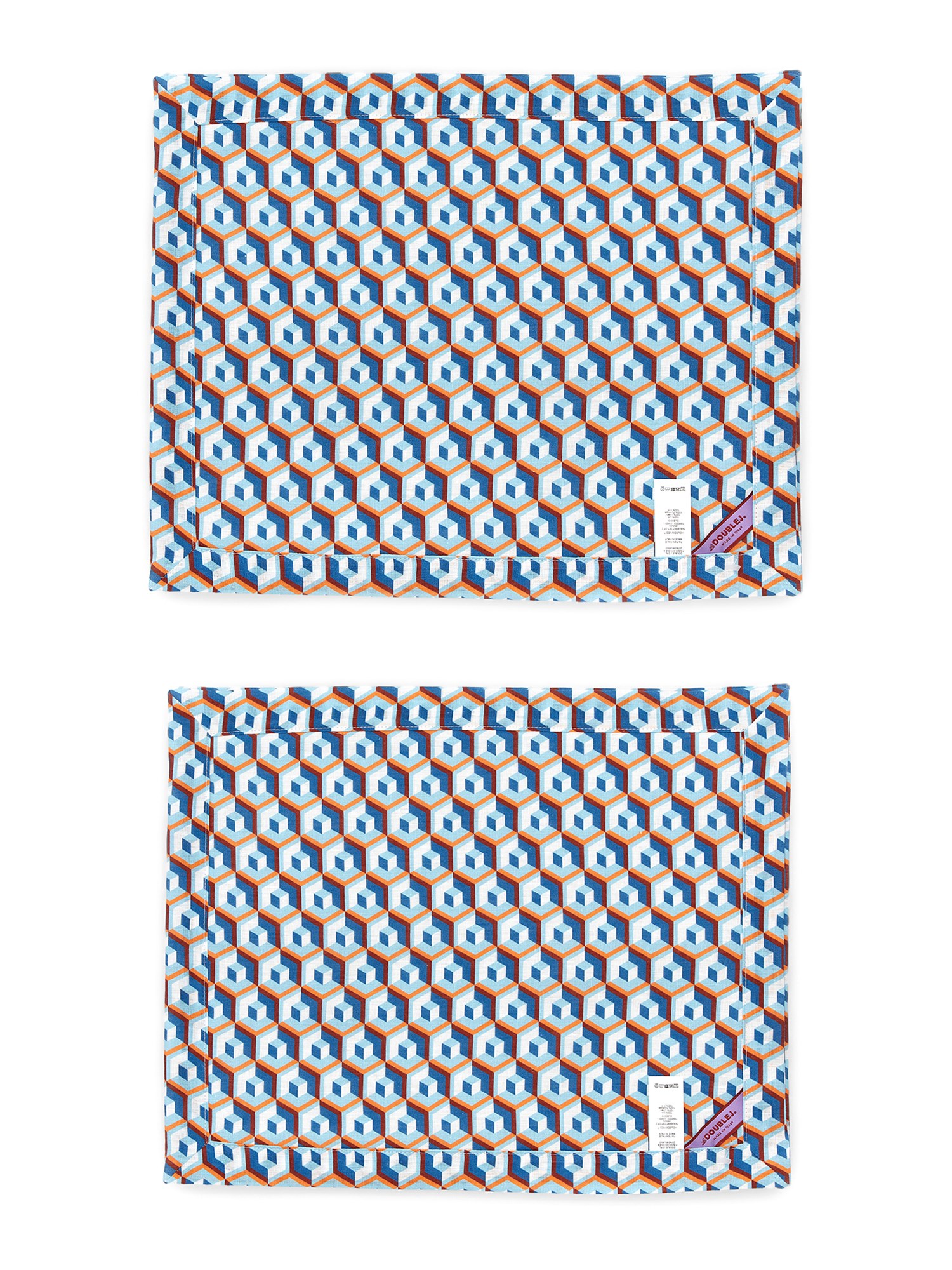 LINEN PLACEMAT CUBE PRINT SET FOR TWO