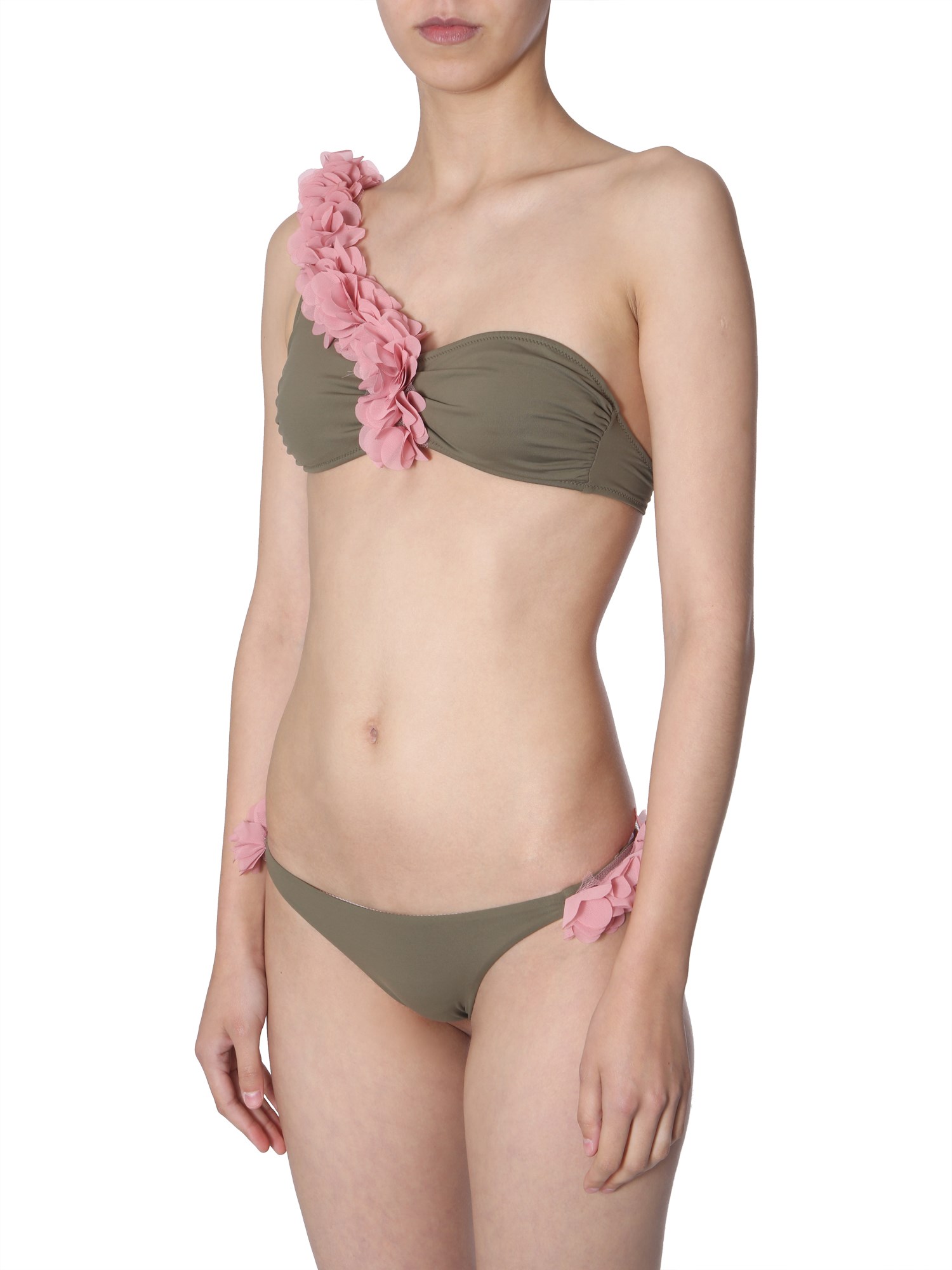 Planning a beach trip or going for a pool party, wear this Rasha swimsuit from La Reveche. This two-piece swimsuit is fabricated from a blend of polyamide and elastane that helps in stretch and shape retention. It features a single shoulder with applied flowers on the strap. The swim top comes with knot closure to customise your fit.