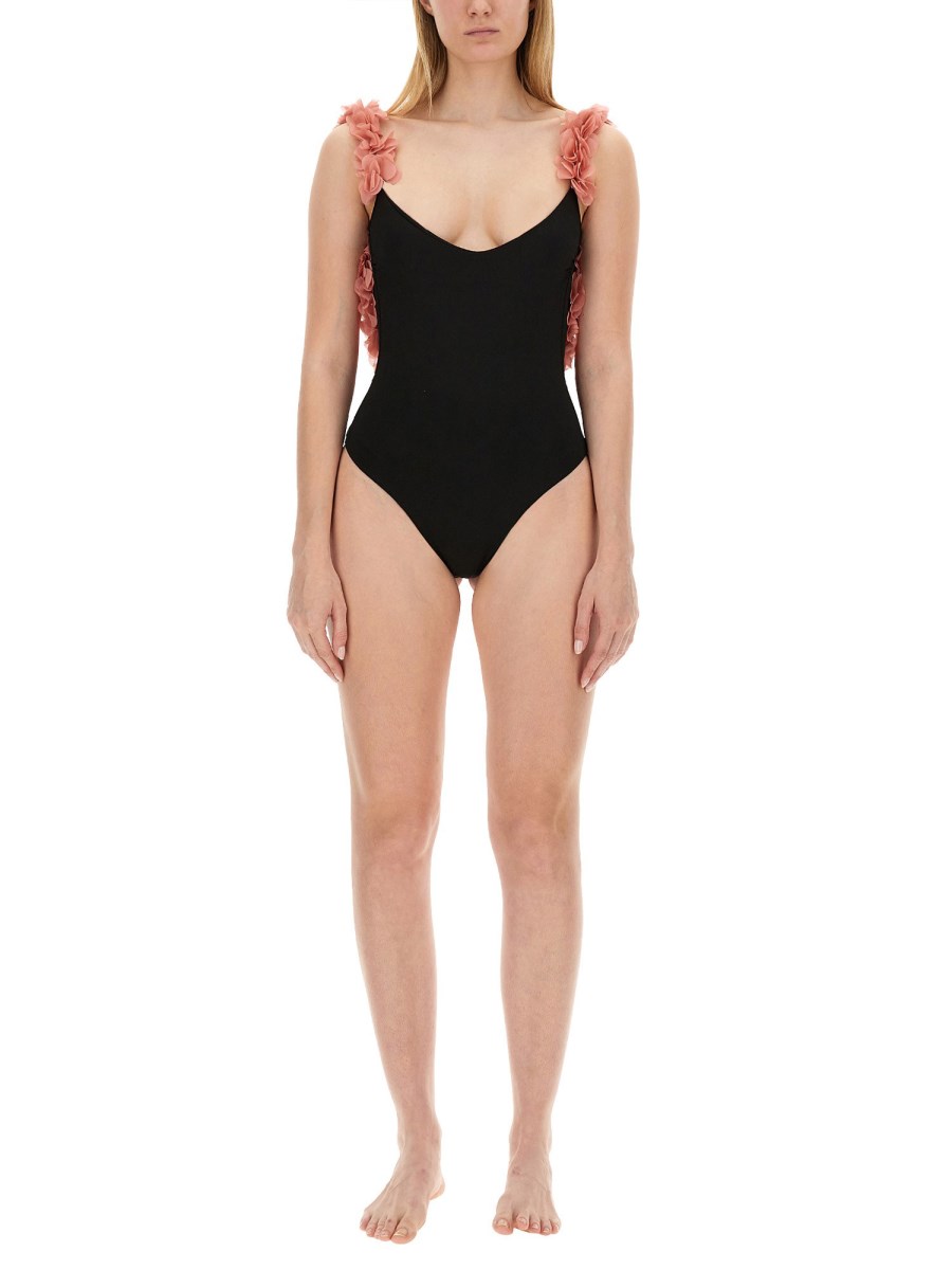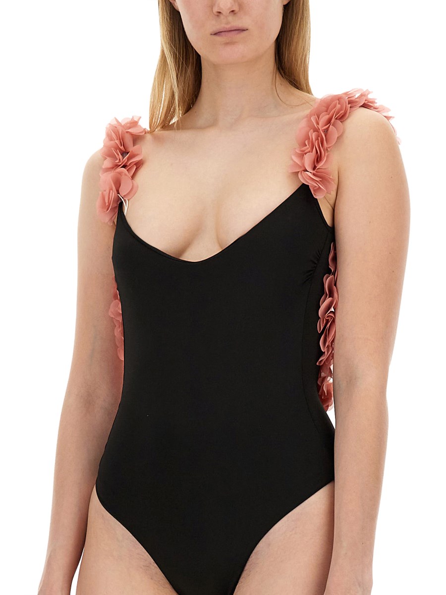 - FLOWERS APPLIED ON SHOULDER STRAP AND NECKLINE