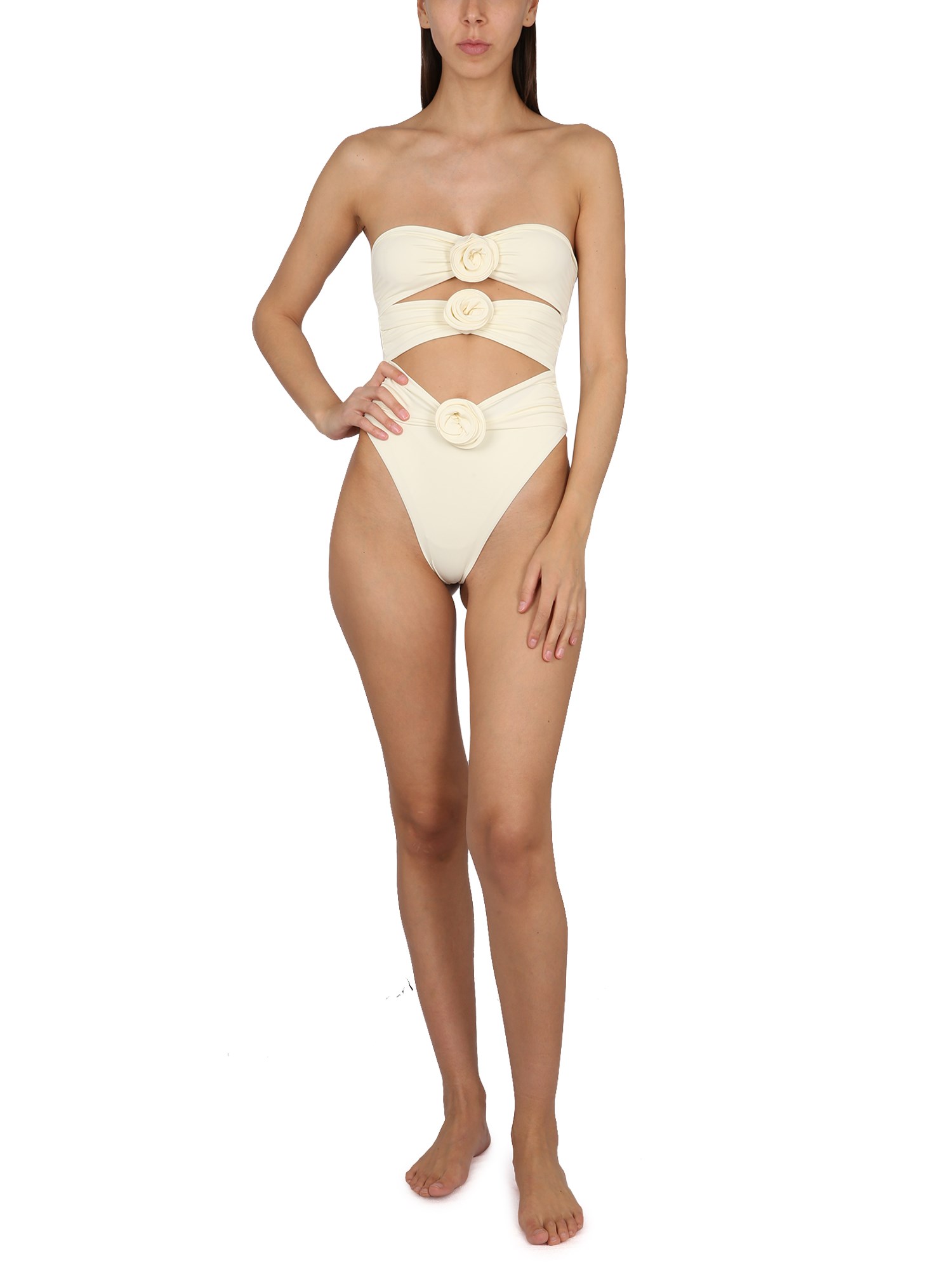 The "VESNA" one-piece swimsuit from La Reveche is a stunning and elegant swimwear option. Made with high-quality materials, this swimsuit features a flattering design with a deep V-neckline and intricate lace detailing. The unique and luxurious look of the "VESNA" swimsuit makes it a perfect choice for those who want to stand out at the beach or by the pool. With its timeless style and attention to detail, this swimsuit is sure to make a statement.