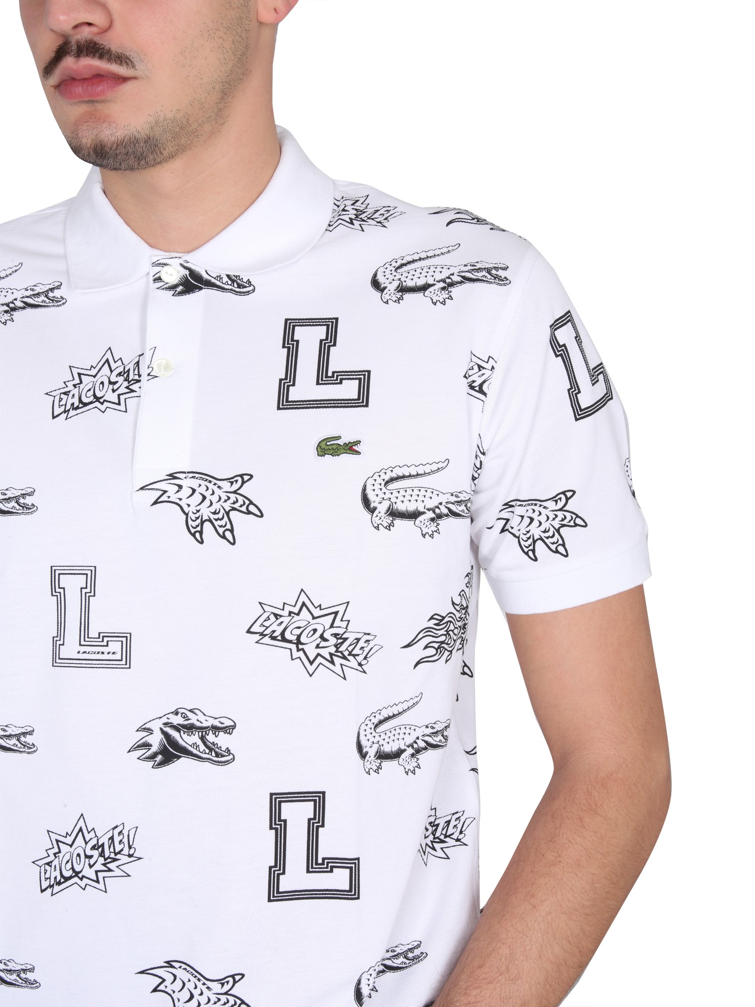 The Lacoste cotton logo print polo T-shirt is a comfortable, breathable, and casual piece of clothing. It is made of 100% cotton and is available in a variety of colours. The Lacoste logo is embroidered on the left chest, while the iconic crocodile print is on the right chest.