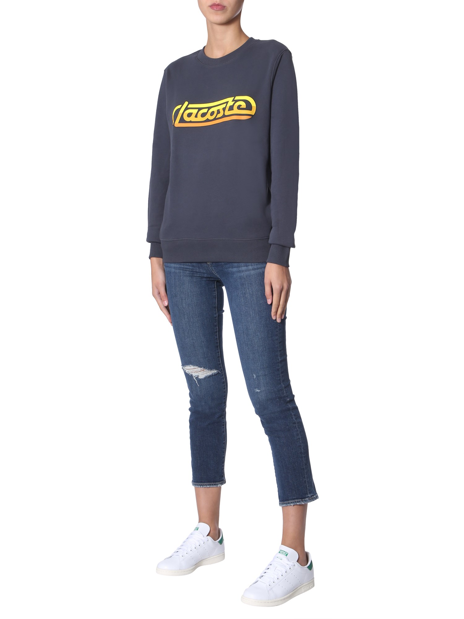 This Lacoste sweatshirt is an amazing mixture of style and comfort. 100% cotton-made, this piece of clothing gives you a soft and plush feel all throughout the day. The logo print at the front is presented in a racing colour combination, making the main attraction of this sweatshirt. You can wear it with any type of lowers and shoes.