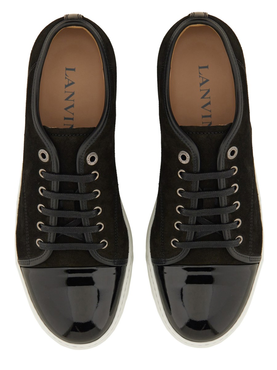 SNEAKER IN SUEDE CON CAP TOE IN PELLE LUCIDA