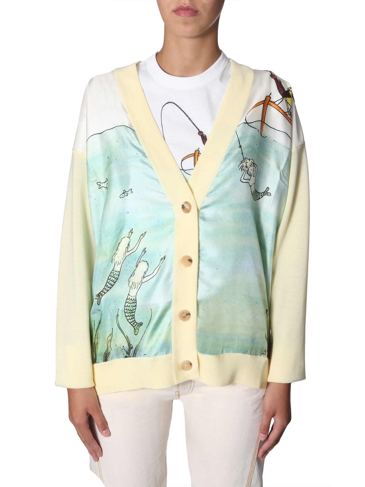 Keep your style bar high with this printed cardigan from Lanvin. The use of wool and silk blend fabric in its manufacture makes it a perfect addition to your wardrobe. It has V-neck and front button closure that gives a comfortable fit. The funky print at the surface completes its trendy design.