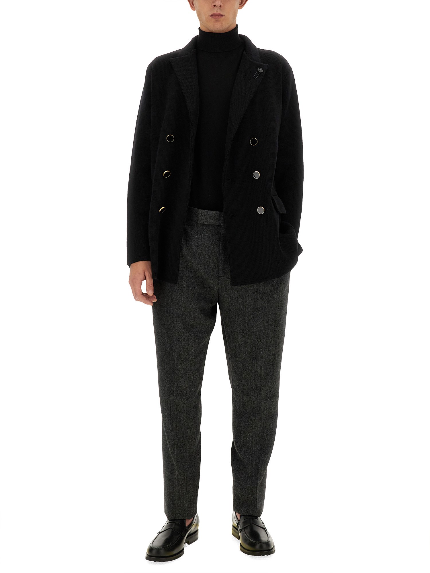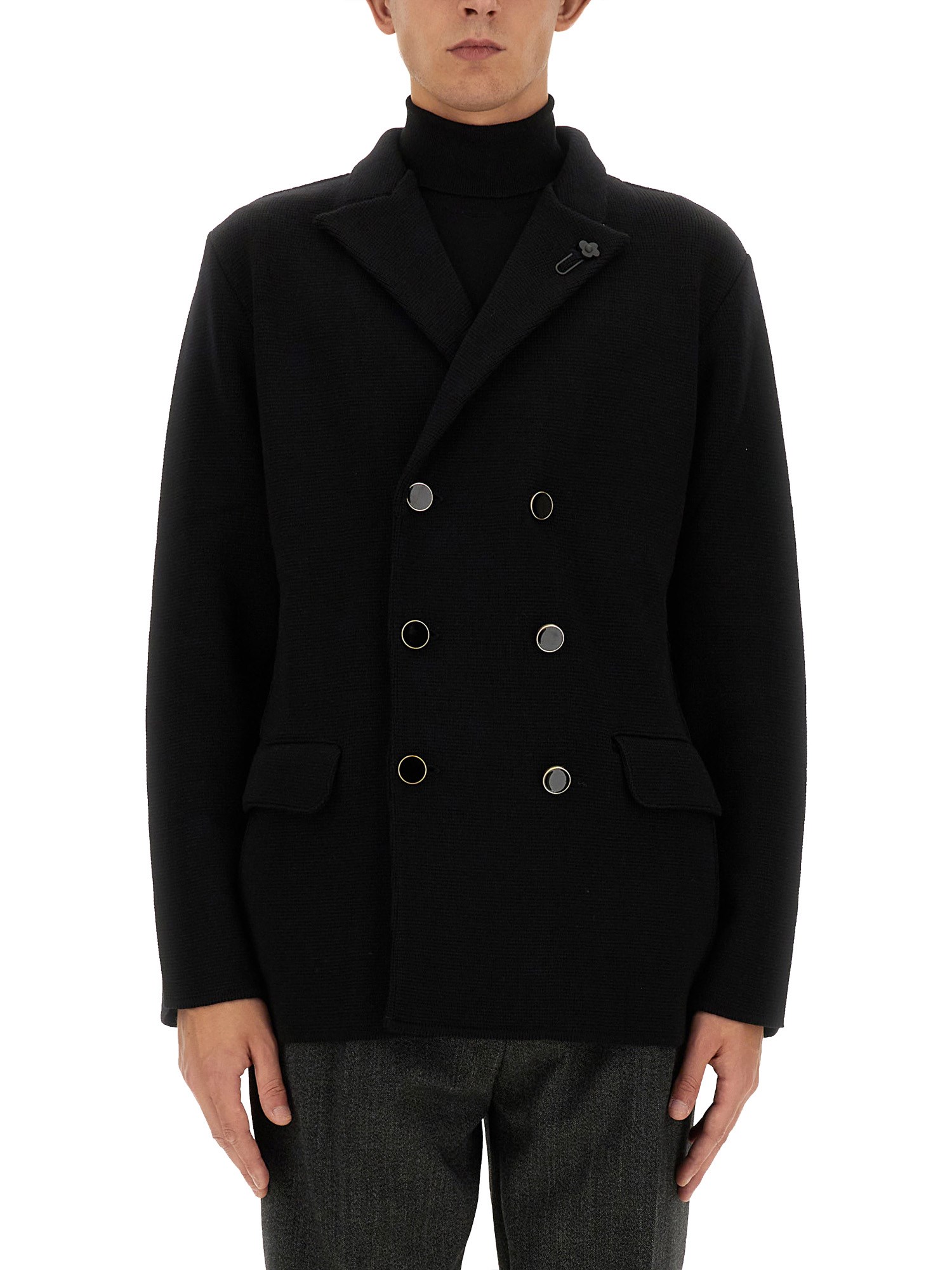 The double-breasted peacoat from Lardini exemplifies timeless elegance and superior craftsmanship. Made from high-quality materials, this coat features a classic silhouette with a sophisticated double-breasted front, providing both warmth and style. The tailored fit ensures a flattering shape, while the luxurious fabric offers comfort and durability. Ideal for both formal and casual occasions, this peacoat is a versatile addition to any wardrobe, embodying the perfect blend of tradition and modernity.