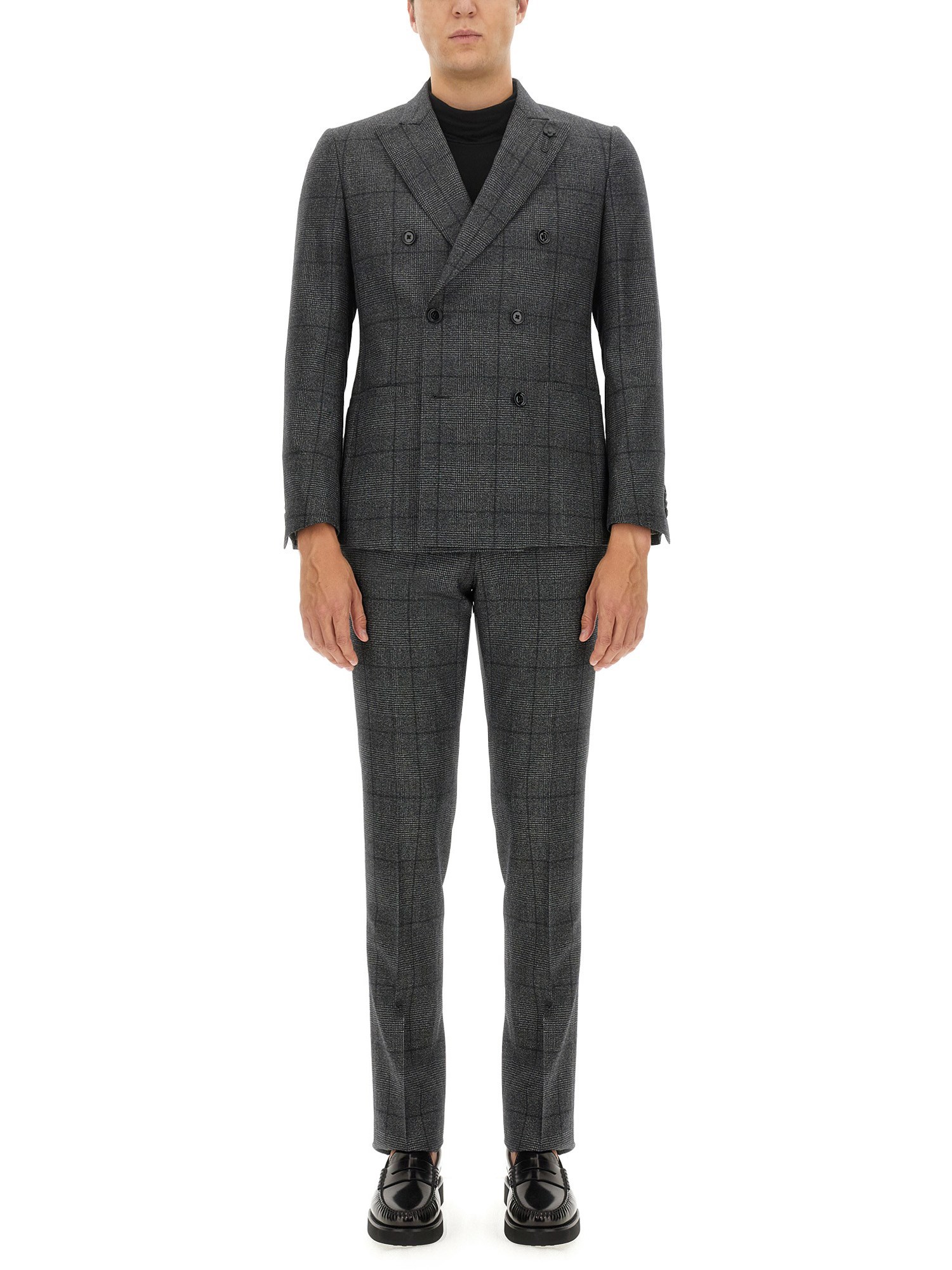 Step into the world of suave fashion with the Kosmo wool double-breasted suit by Lardini. Designed to make a lasting impression, this suit showcases a timeless appeal with its elegant notched lapel collar and long sleeves. Cut from a luxurious lightweight wool fabric, it ensures breathability and ease of movement without compromising on style. Perfectly versatile, it effortlessly transitions from formal office gatherings to celebratory events.