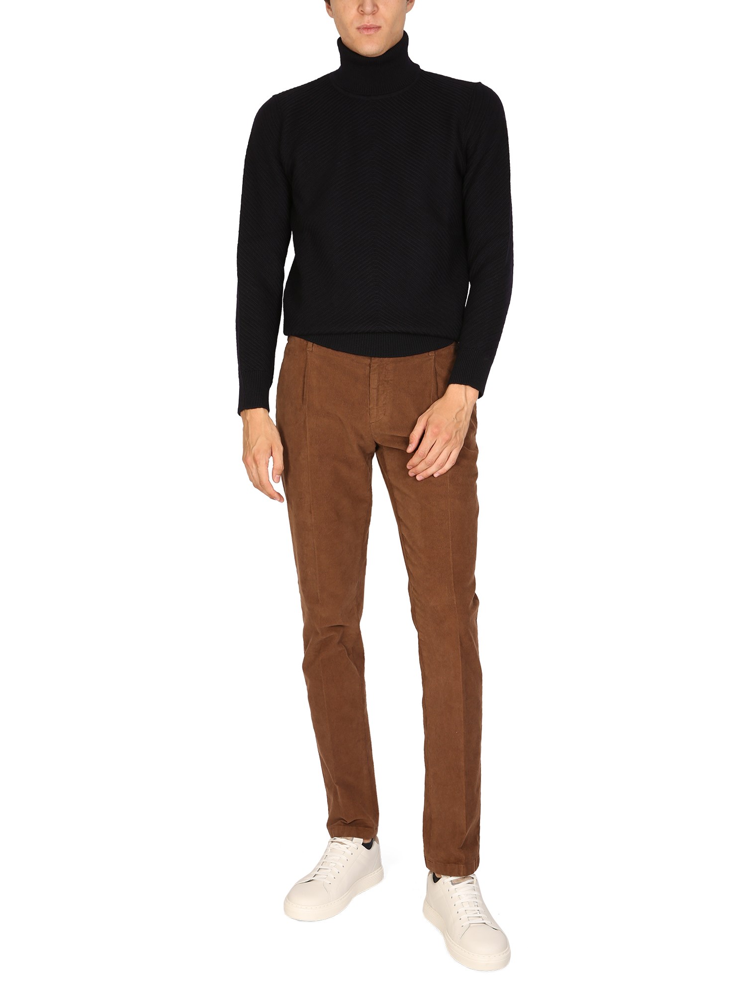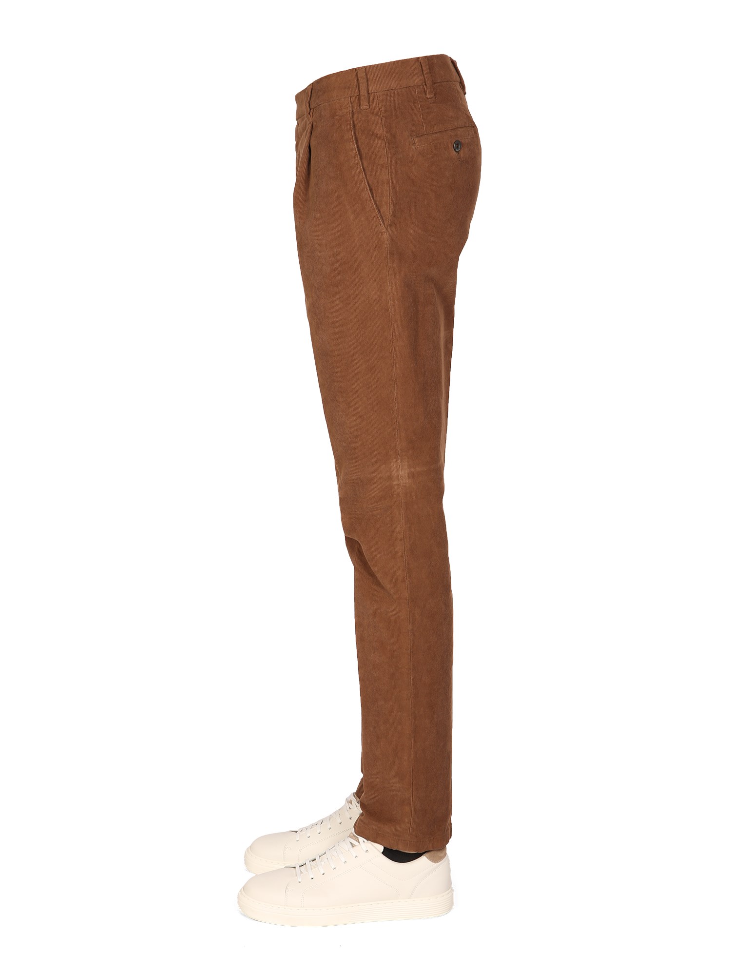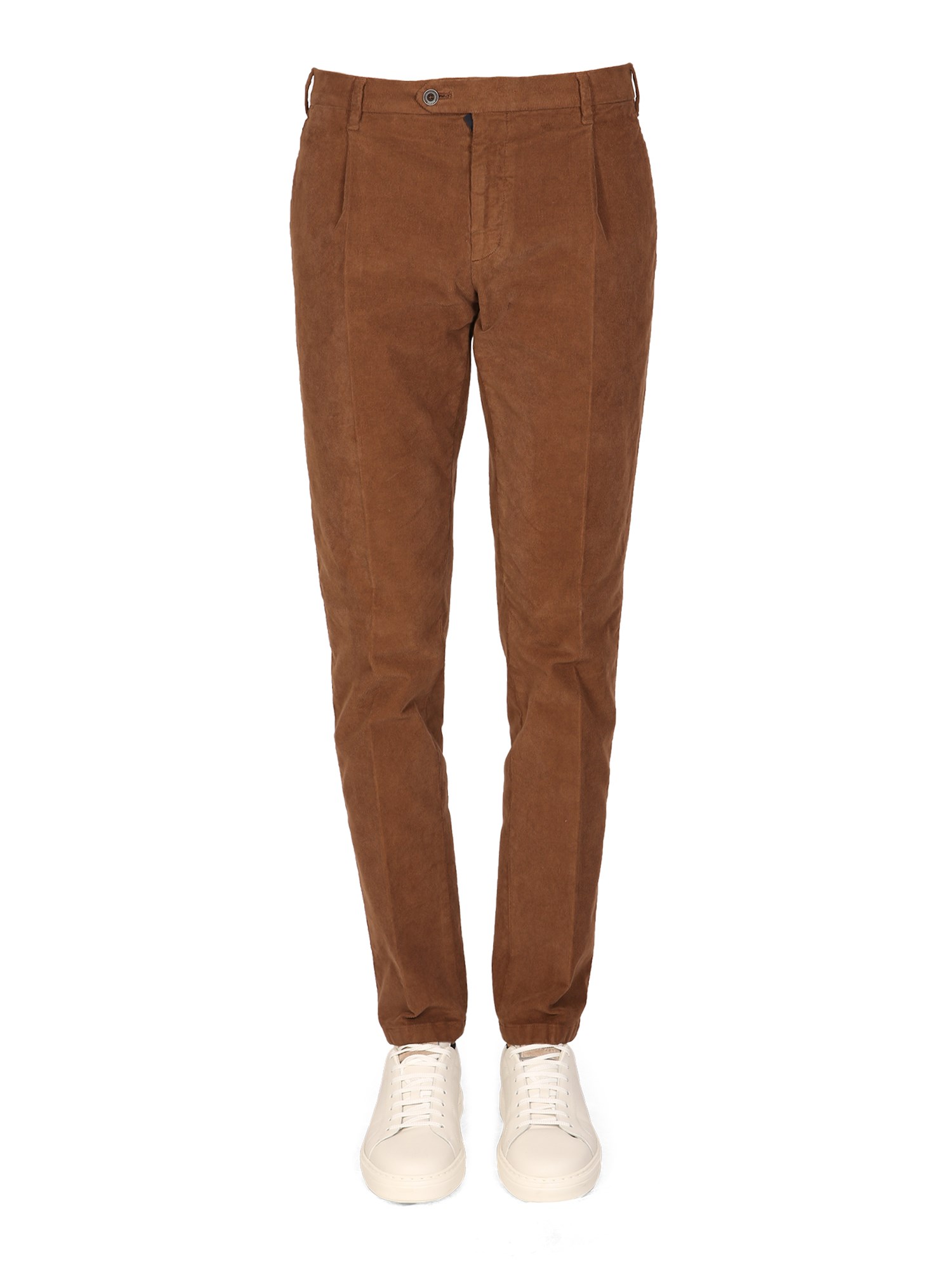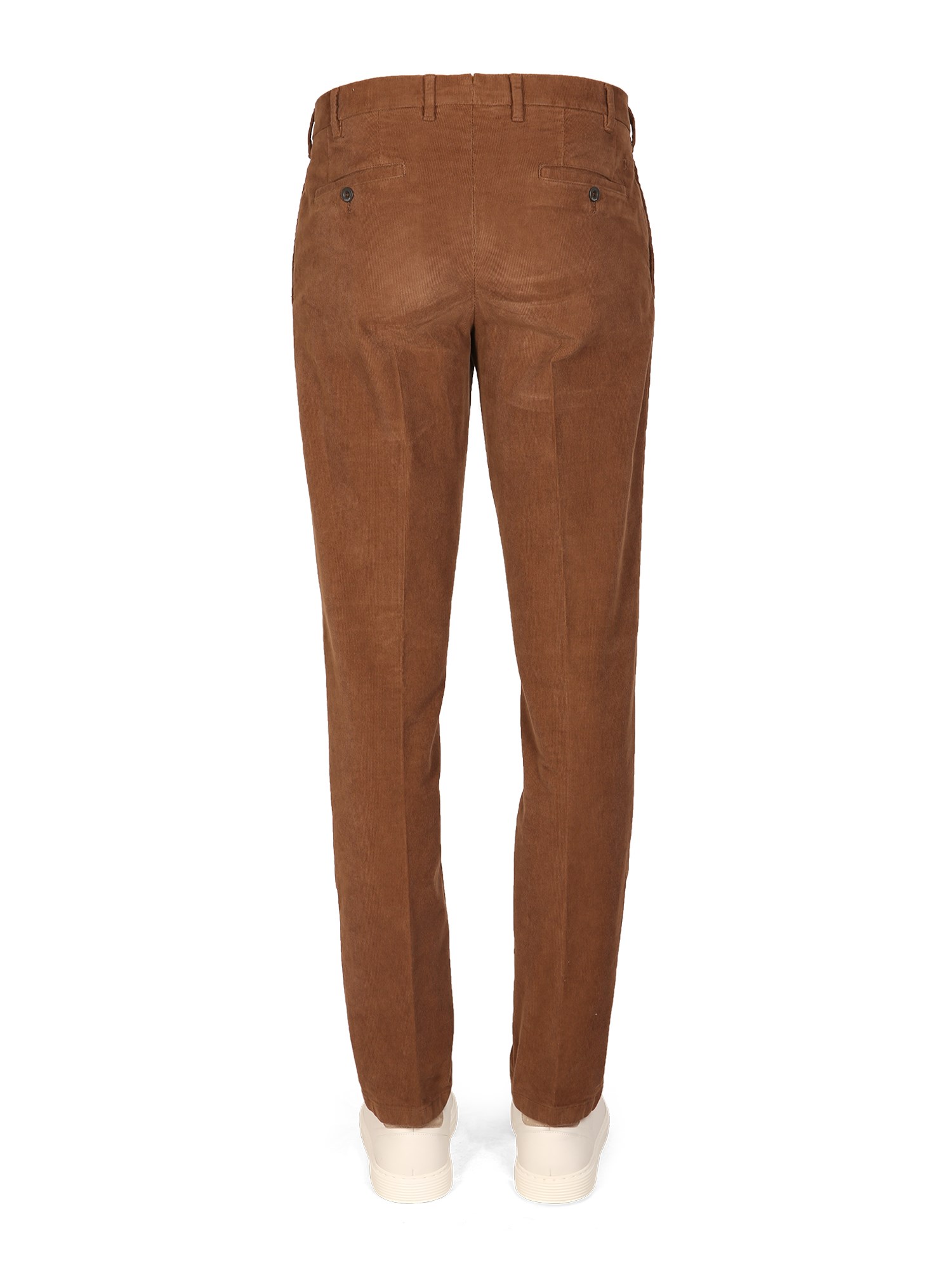 Button and zipper fly closure ribbed cotton pants by Lardini are a perfect addition to any wardrobe. These cotton pants feature a button and zipper fly closure, and ribbed cotton material. They are a slim-fit style and perfect for casual or dressy occasions.