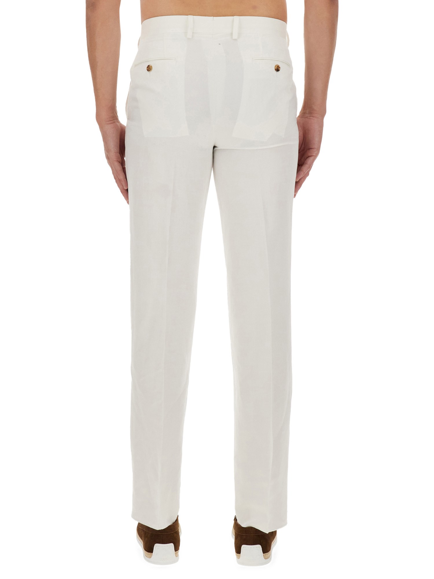 These pants from Lardini are designed to give you both comfort and style all day long. Made from high-quality fabric, these pants provide a smooth and flattering fit, accentuating your natural curves. The timeless white colour adds a touch of elegance to any outfit and allows for versatile styling options. Whether you're dressing up for a special occasion or keeping it casual for a day out, these pants are the perfect choice. The straight leg cut elongates your silhouette and provides a sleek and sophisticated look. It's a classic design that never goes out of style.