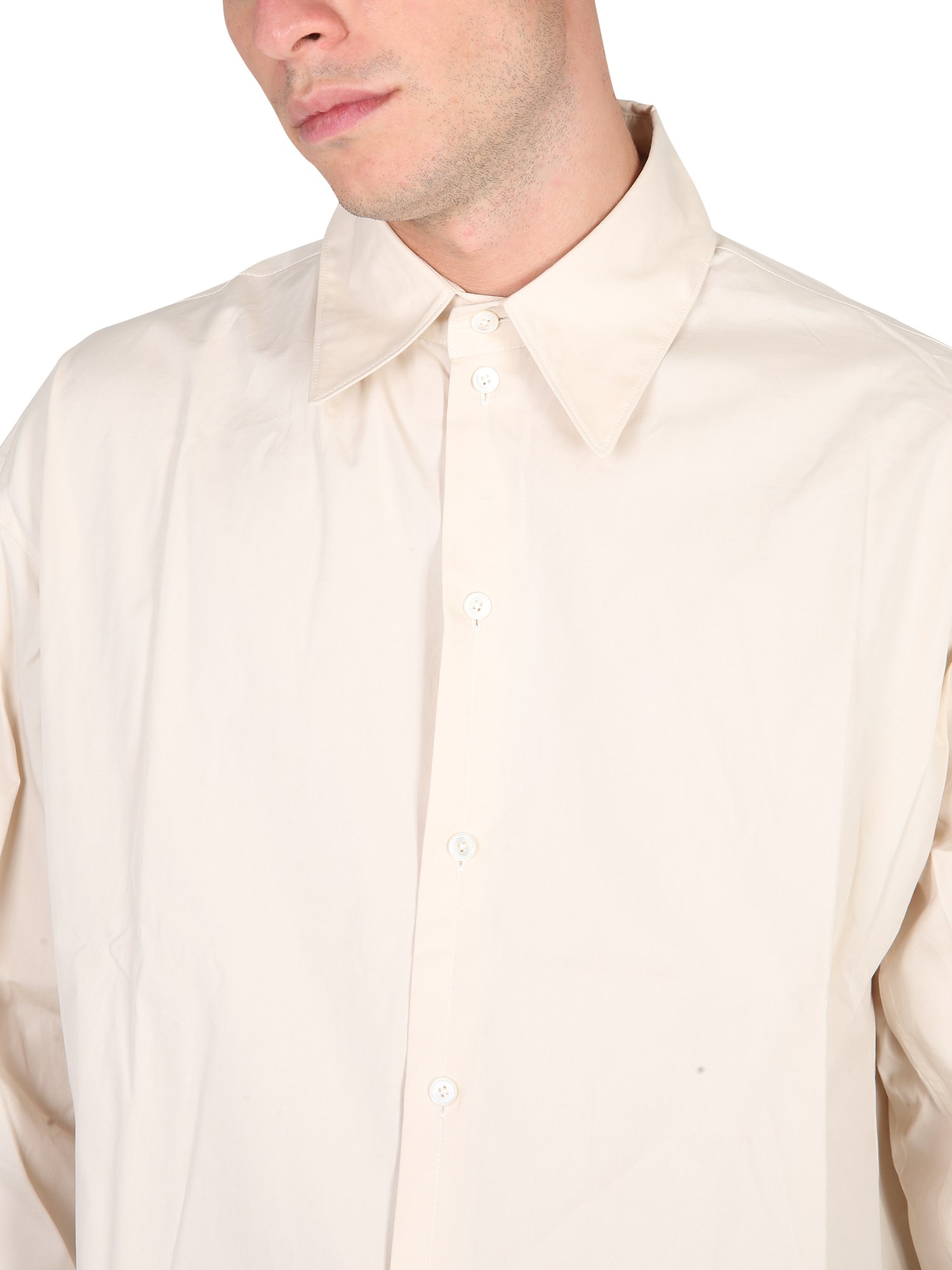 The crisp cotton shirt from the house Lemaire is ready to wear. This shirt is made from the highest quality cotton and has a natural feel to it. It has a classic collar, long sleeves with button cuffs, and front closure. This shirt is an excellent way to stay cool during the summer months.