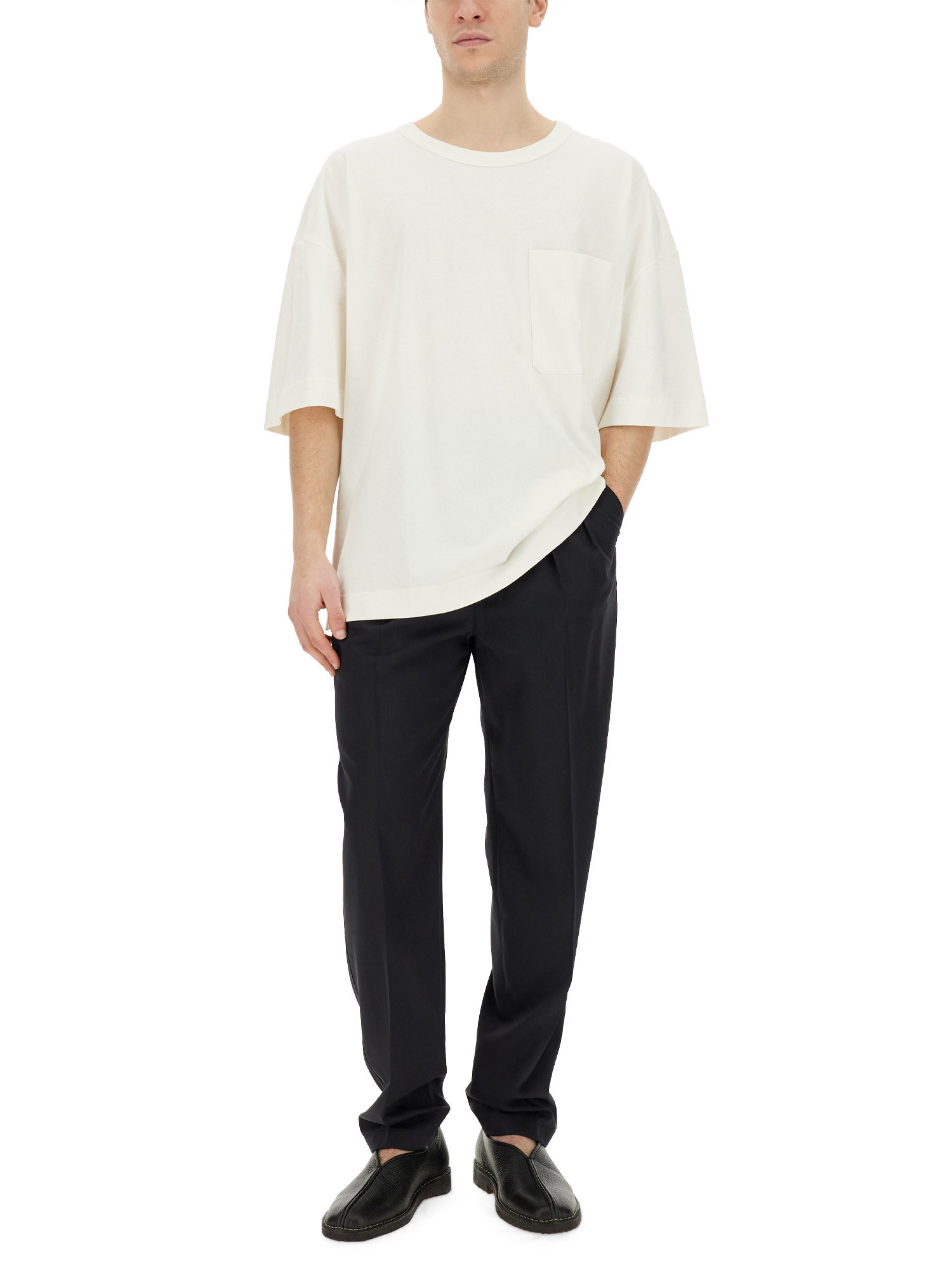 The Boxy Fit T-shirt from Lemaire is a versatile and stylish addition to any wardrobe. Made from high-quality materials, this T-shirt features a relaxed, boxy fit that provides both comfort and a modern silhouette. With its minimalist design and attention to detail, it can be easily dressed up or down for any occasion. Whether worn on its own or layered under a jacket, this T-shirt is a timeless and essential piece for any fashion-forward individual.