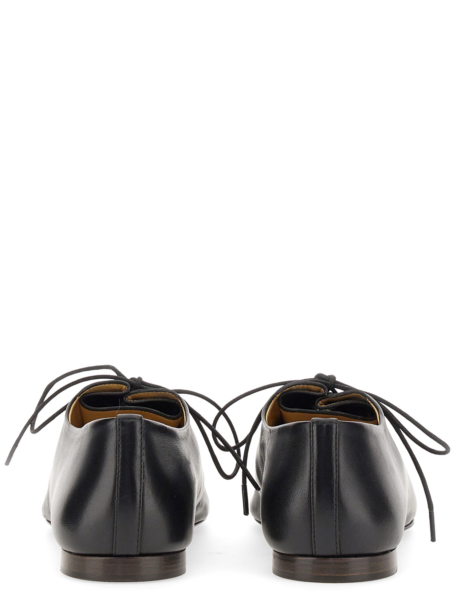 Be it a formal event or a casual family occasion the Derby low Nappa leather shoes from Lemaire are sure to make a statement. It features a hammered leather upper, leather inner, and slight heel. The shoes have a square toe design and waxed cotton tubular laces system. It also has leather lining and a padded insole for added comfort.