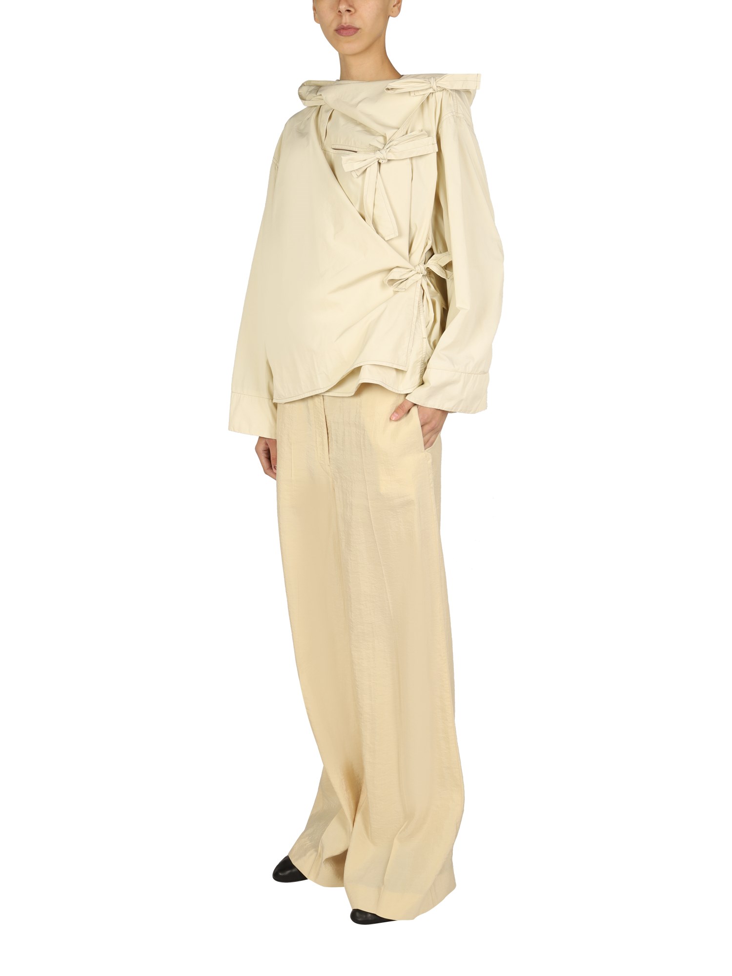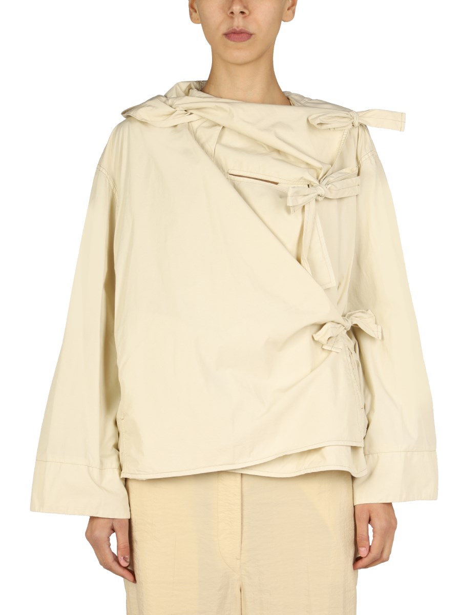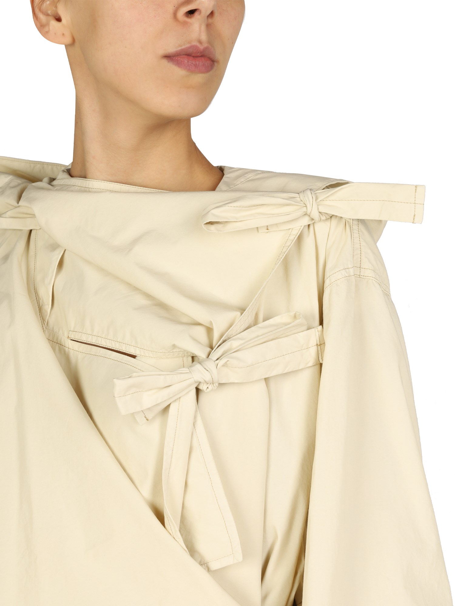 - HOODED NECKLINE- ASYMMETRICAL BOW CLOSURE - 65% COTTON, 35% POLYAMIDE- MODEL IS 180 CM TALL AND WEARS SIZE 36 FR