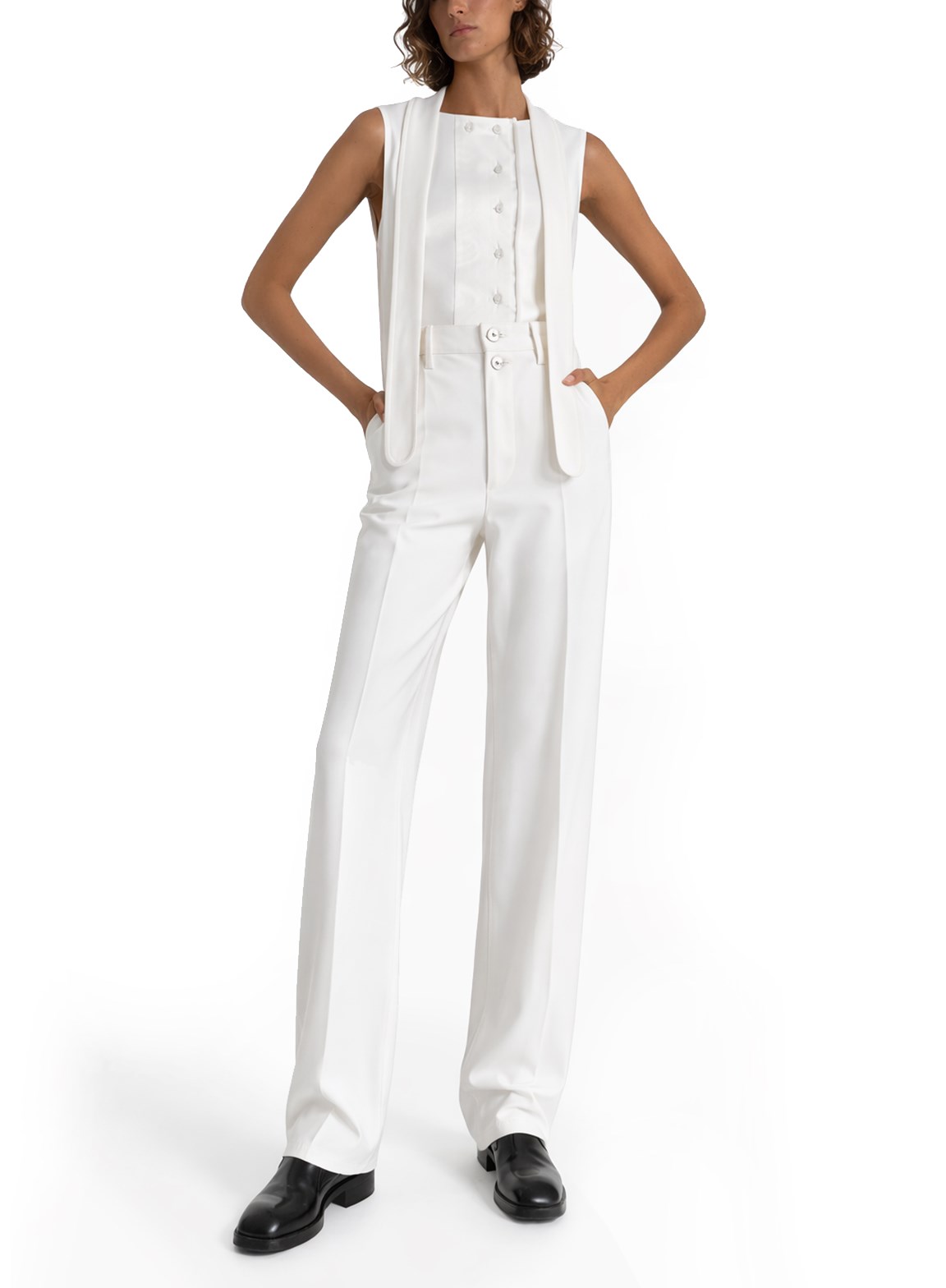 ASYMMETRICAL RIBBED COTTON-LINEN BLEND TOP WITH SCARF