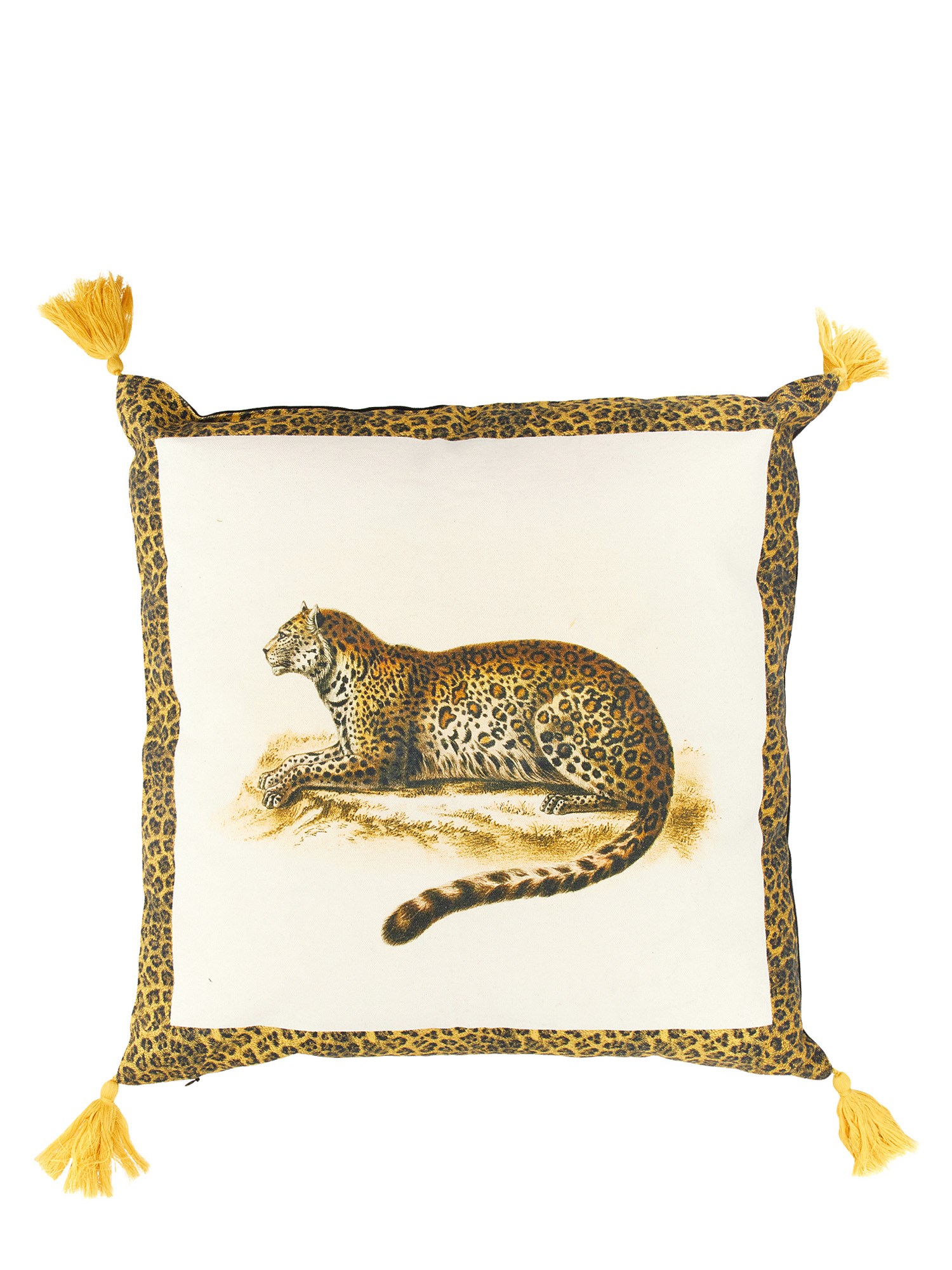 - THE OTTOMAN LEOPARD MENAGERIE PRINT- TASSELS AT THE CORNERS- ZIP CLOSURE- DIMENSIONS: 50 CM X 50 CM- 100% COTTON