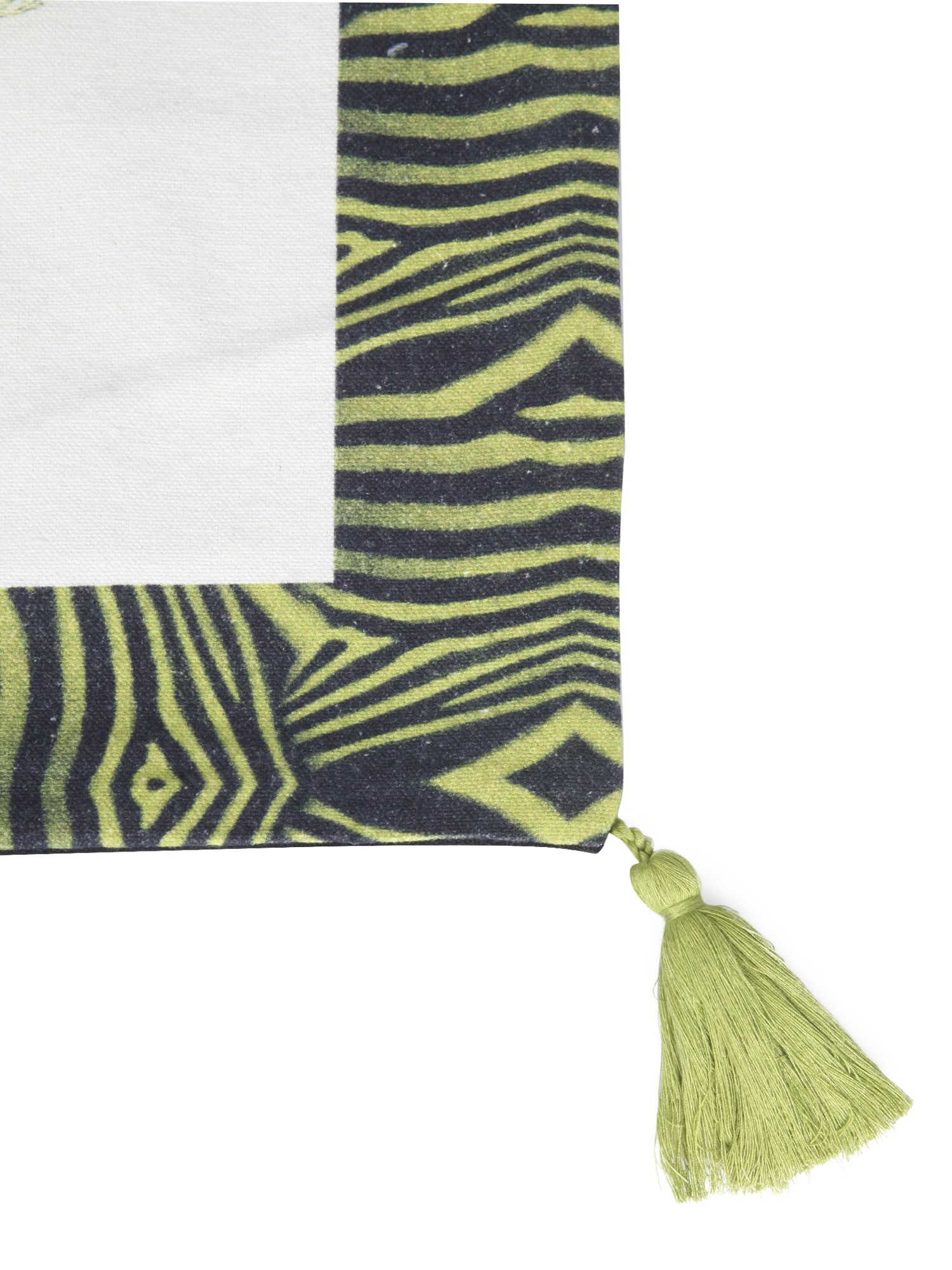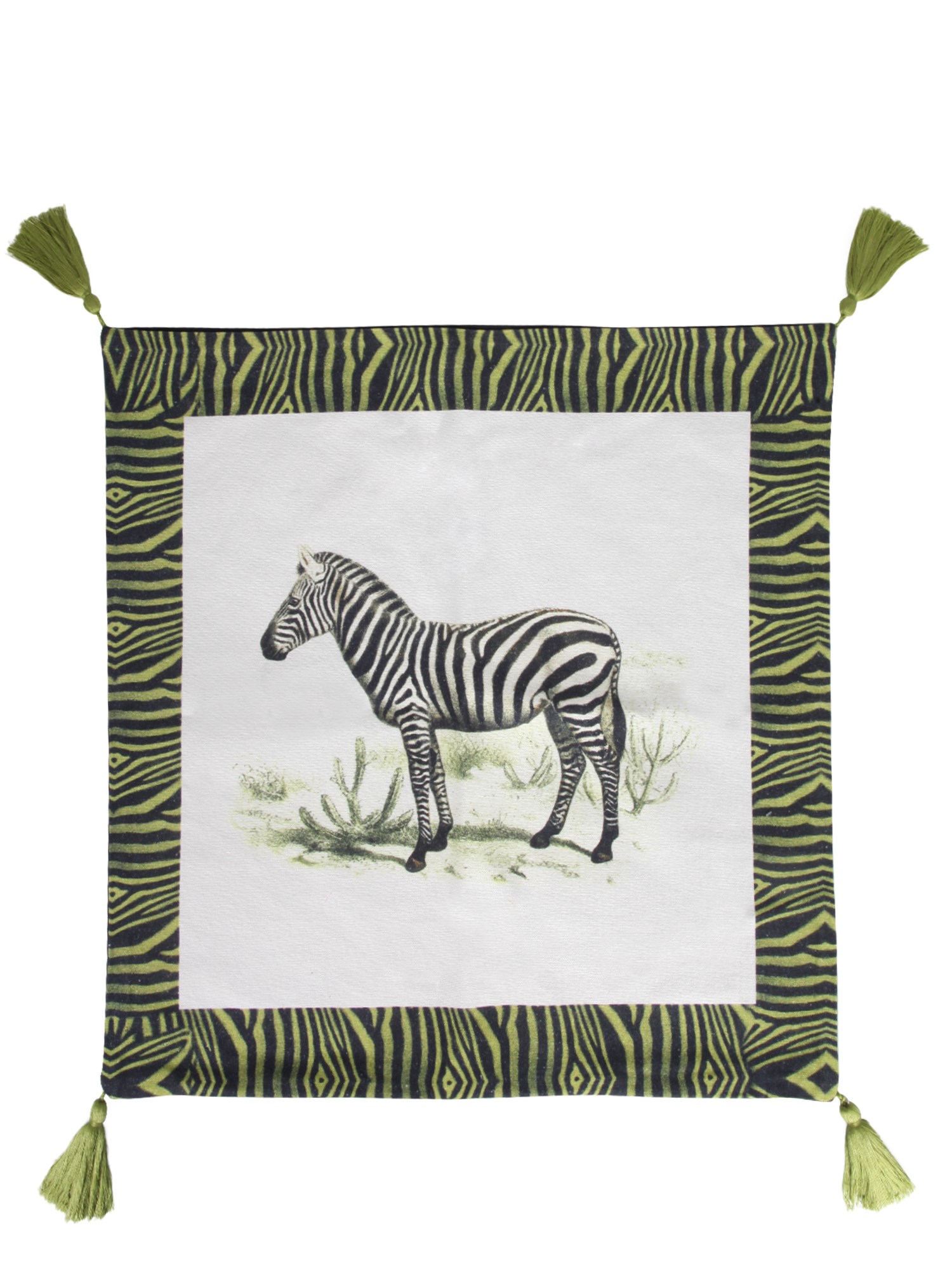 - THE OTTOMAN ZEBRA MENAGERIE PRINT- TASSELS AT THE CORNERS- ZIP CLOSURE- DIMENSIONS: 50 CM X 50 CM- 100% COTTON