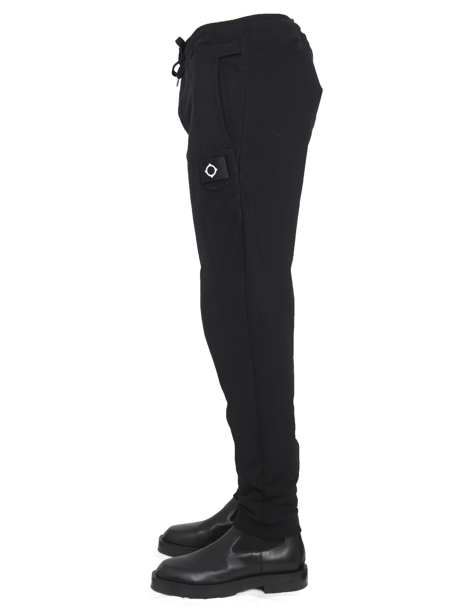 These jogging pants from Ma. Strum are perfect for a day out. They have an elastic waistband with a drawstring, so they are easy to pull up and down. They are made of cotton, so they are soft and comfortable. It also features two side pockets, one welt pocket and a removable iconic label.