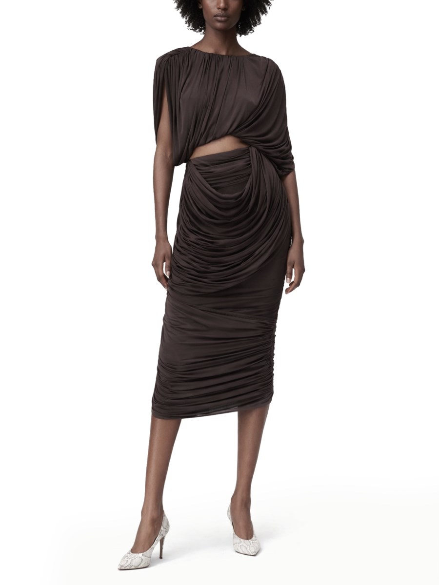 ASYMMETRICAL DRAPED MIDI SKIRT